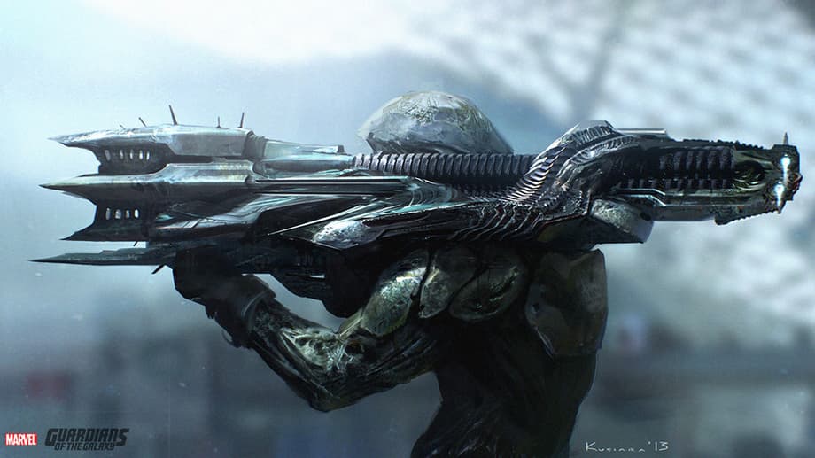 Conceptual artist, Maciej Kuciara ("X-Men: Days of Future Past"), updated his official website with concept art he created for Marvel Studios' Guardians of the Galaxy. Hit the jump to check out various weapons designed for Rocket and the Sakaarans.