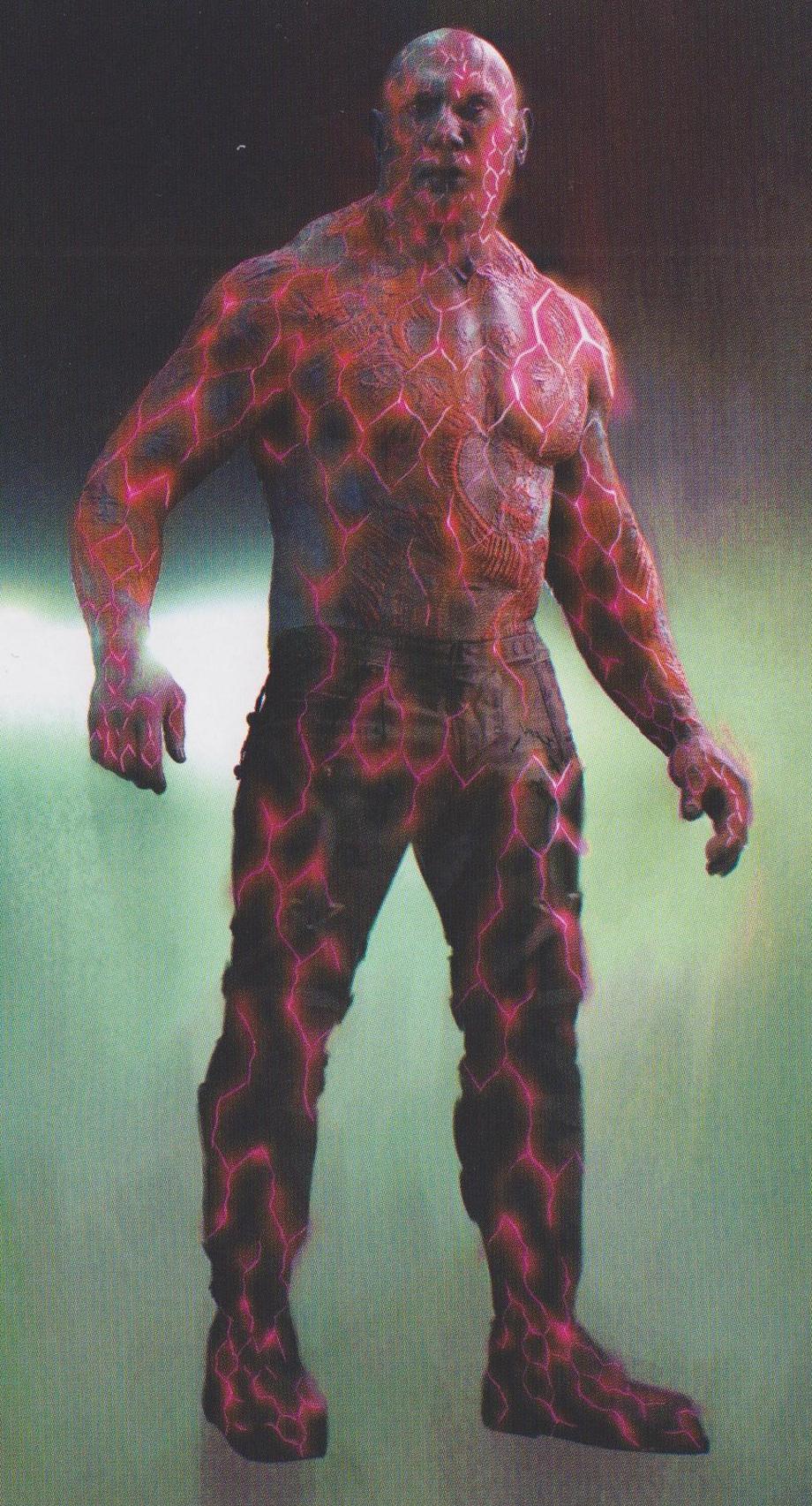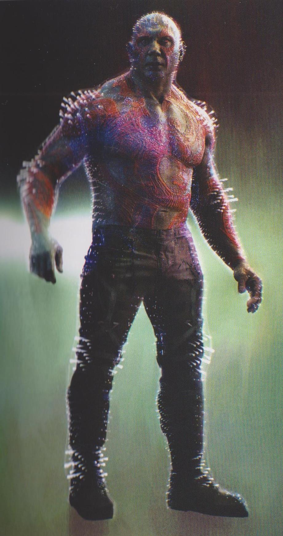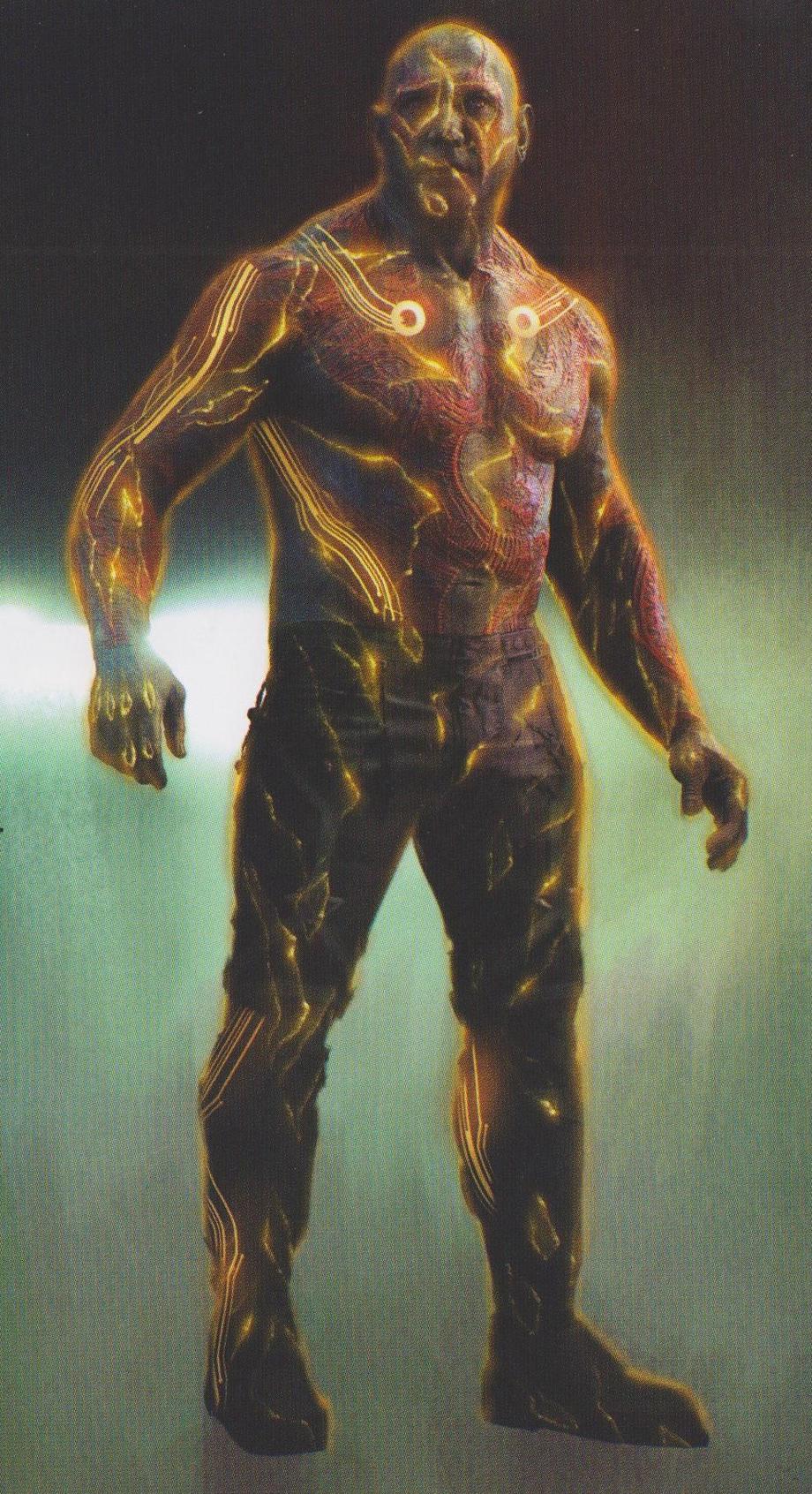 No, Marvel wasn't considering a drastically different look for Drax in the movie! These are actually designs for that spacesuit he wears...you know, the one that irritates his poor, sensitive nipples.