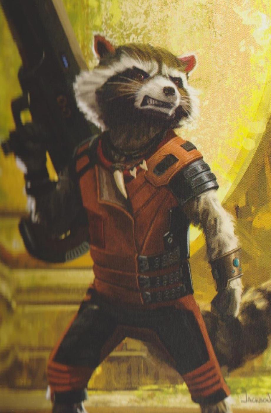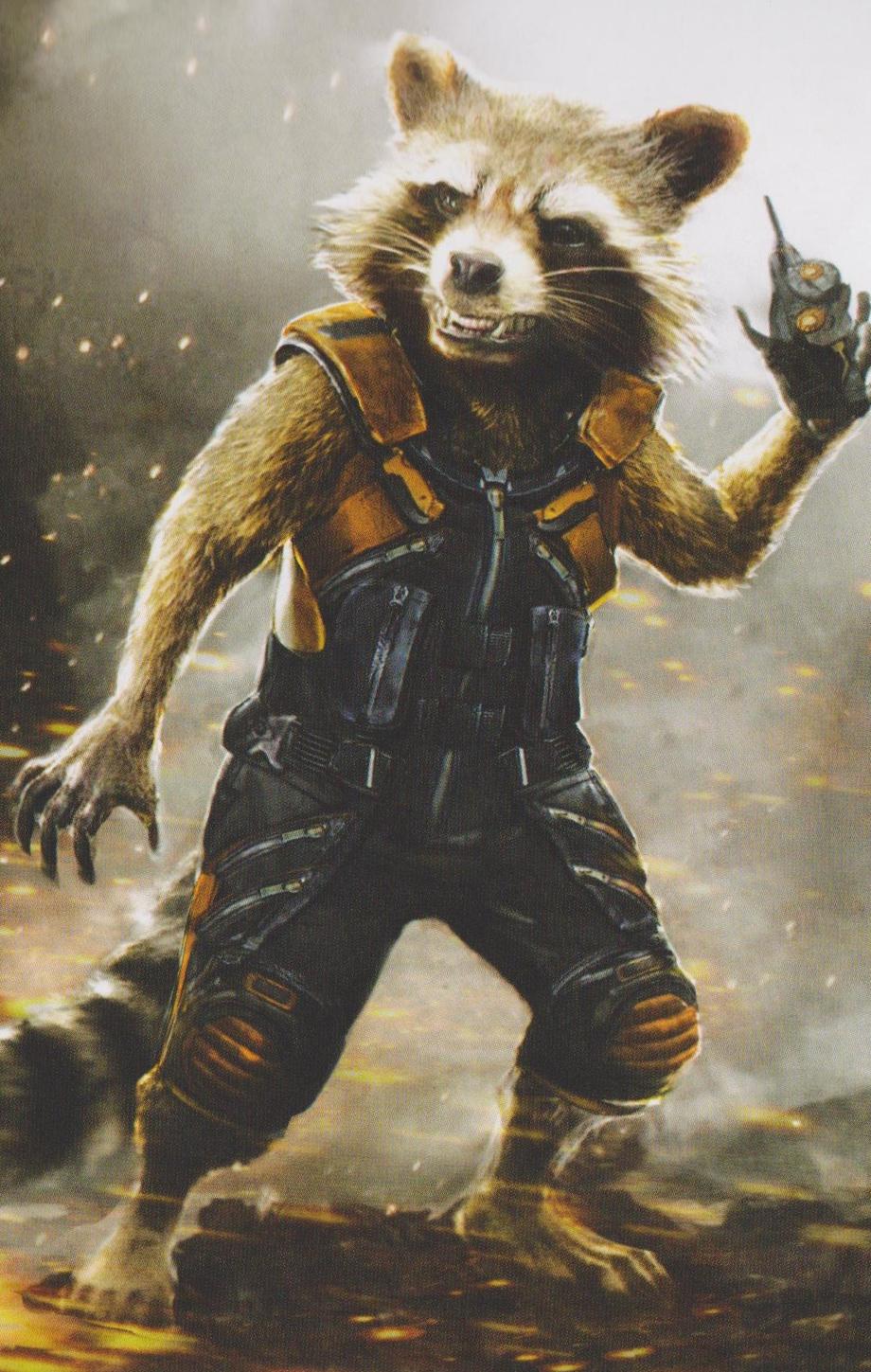 Ok, is it me or does Rocket look a little like The Winter Soldier here? Between the dark blue suit and the flash of red on his arm, I can't actually help but be reminded of Bucky at first glance.