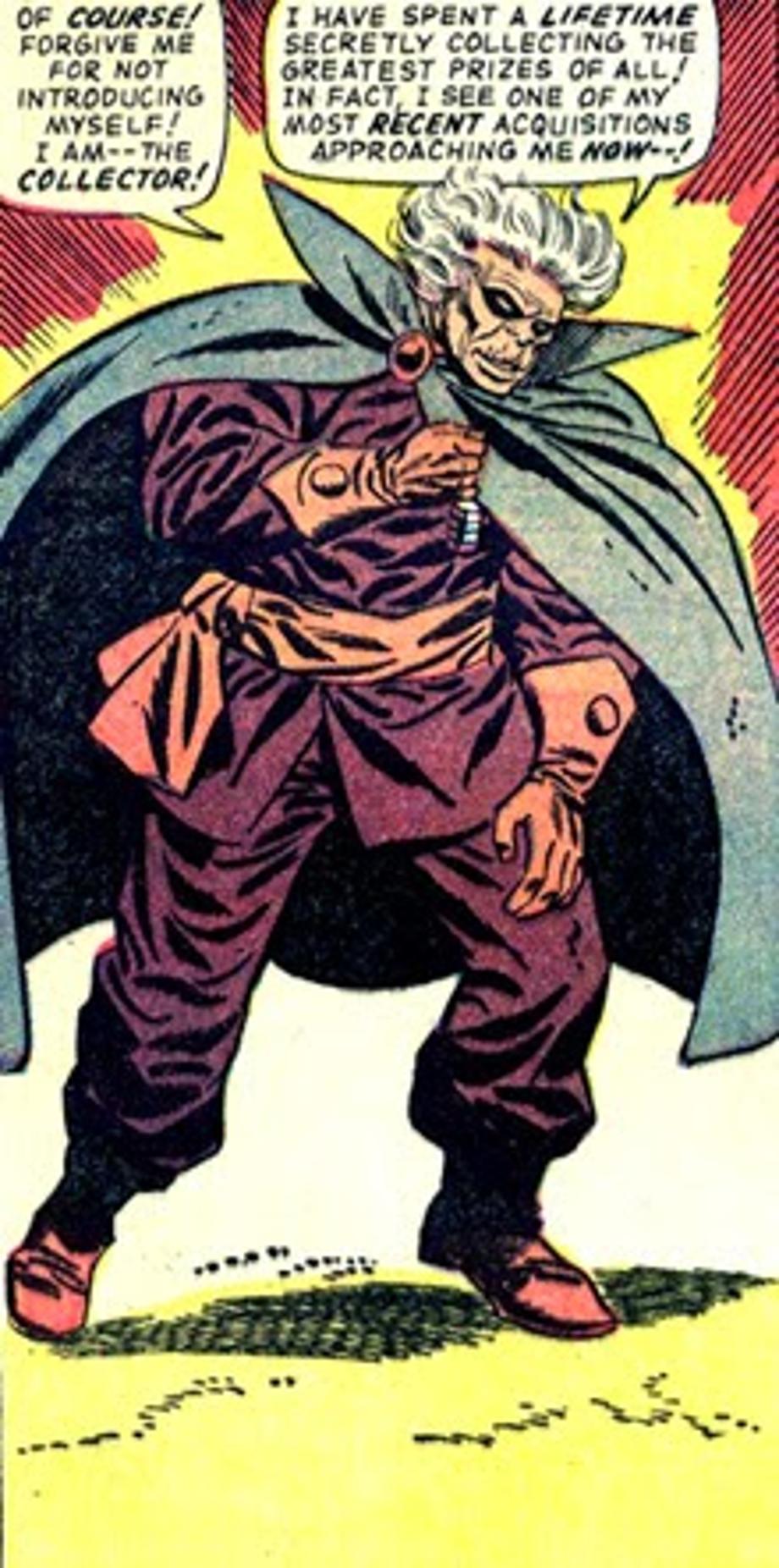The Avengers #28 (May 1966) by Stan Lee & Don Heck, introduced the villain The Collector, a mysterious little man who enjoyed collecting unique objects from all existence. In his first apperance, he was interested in The Wasp as a unique individual. He appeared as a recurring character ever since, and would ultimately be revealed as one of the eons-old cosmic beings of the universe.