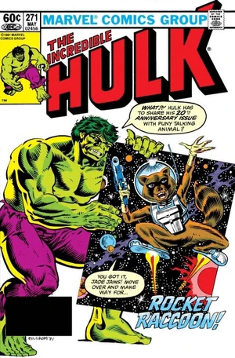 The Incredible Hulk #271 (May 1982) by Bill Mantlo & Sal Buscema. In that issue, the Hulk finds himself on a in a part of space known as the Keystone Quadrant, on a planet called Halfworld, where animals have been genetically engineered to be bipedal and as intelligent as humans in order to be caretakers for the mentally ill there on the planet. Rocket served there as the chief law enforcement officer, and captain of the space ship the