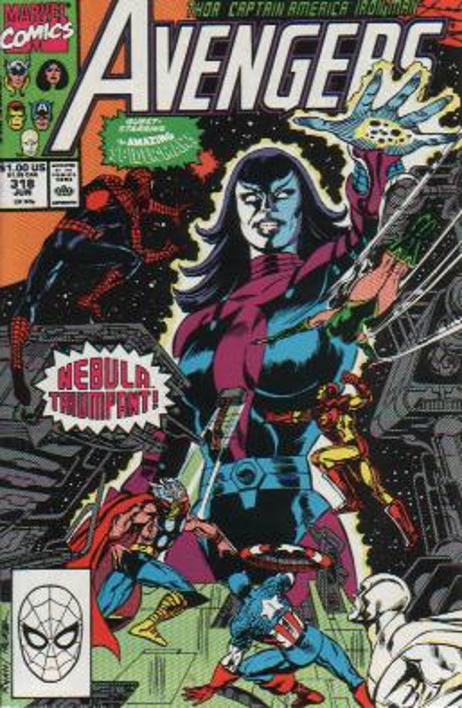 This led into the 1991 Marvel-Universe-wide crossover event, The Infinity Gauntlet by Starlin & George Perez. In this story, Thanos unites the gems on his own gauntlet, wipes out half the life in the universe, and maims Nebula for her claims of being his granddaughter. The Surfer travels to “Soulworld,” where Adam Warlock now inhabits, and convinces him to return. His consciousness, as well as those of Gamora and Pip, are placed in the bodies of three people recently killed in a car accident, whose bodies then morph into their new owners’ forms.