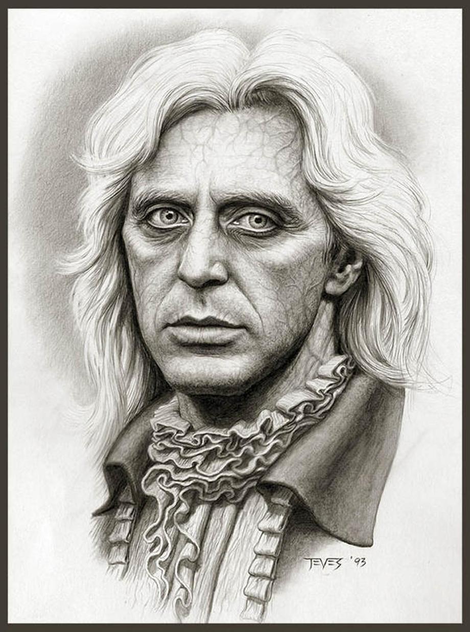 Before Tom Cruise won the role, John Malkovich, Peter Weller, Alexander Godunov and Brad Pitt (he played Louis) were considered for Lestat, and supposedly Johnny Depp and Jeremy Irons even turned down the part. What you may not know, is that Al Pacino ("Serpico") was interested in the role. Below, you will find a quote and concept art from Miles Teves. He was a conceptual illustrator working for Stan Winston Studio at the time.