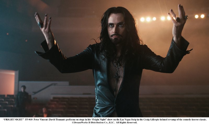 By far the most intriguing character in Craig Gillespie's remake of the horror/comedy is Peter Vincent, re imagined from the original's late night horror host to a Vegas magician and played by former Dr Who David Tennant. He has been largely absent from any promotion aside from a character poster and very brief appearances in the trailers. So here we have a couple of new stills, featuring Vincent looking like he's ready to annihilate some night stalking ass..