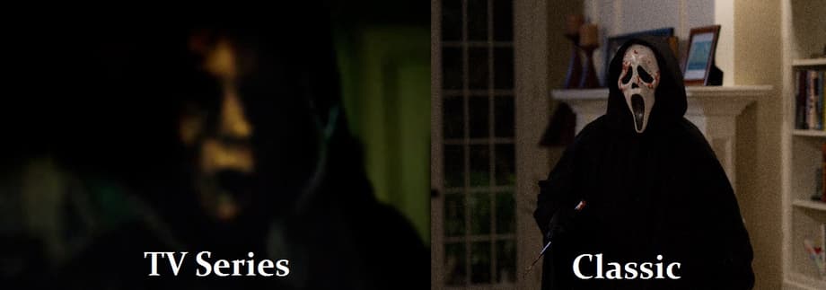 [Left] Ghostface as he appears in the upcoming series; [Right] Ghostface as he appears in the films