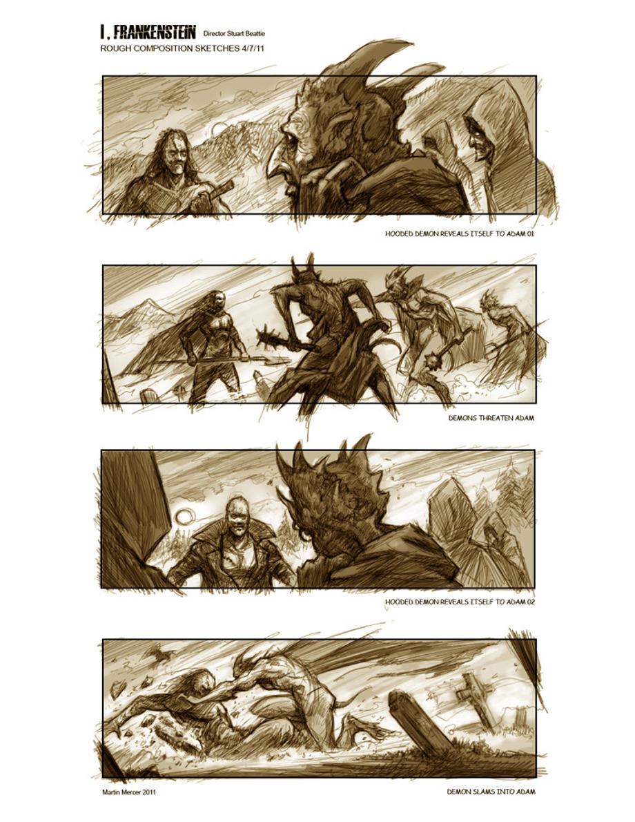 Conceptual illustrator and storyboard artist Martin Mercer ("Iron Man 3"), was nice enough to send us his pitch/pre-production concept art that he created for Stuart Beattie's I, Frankenstein.