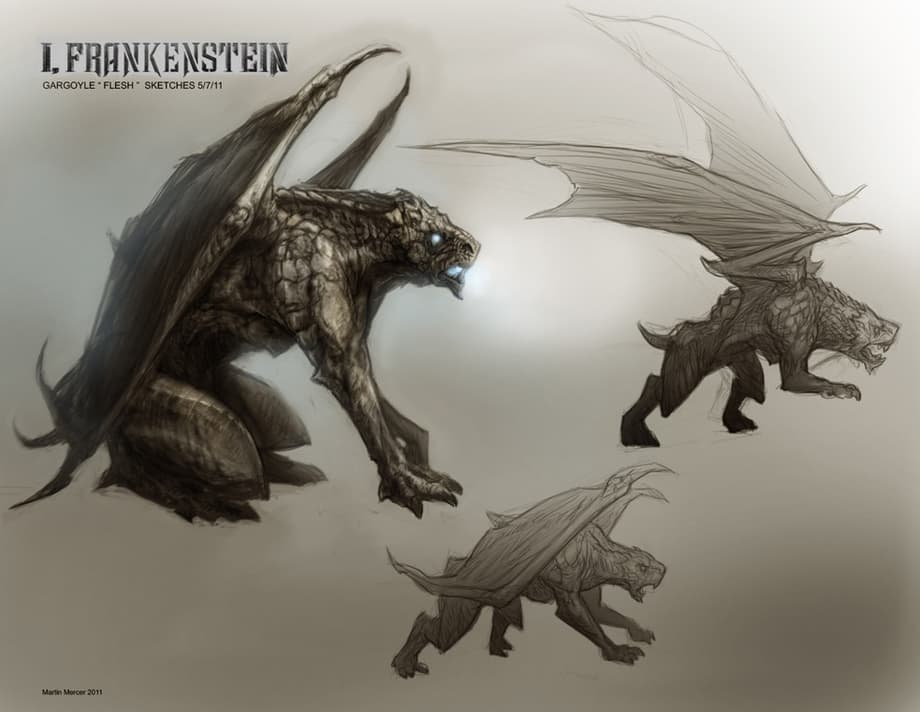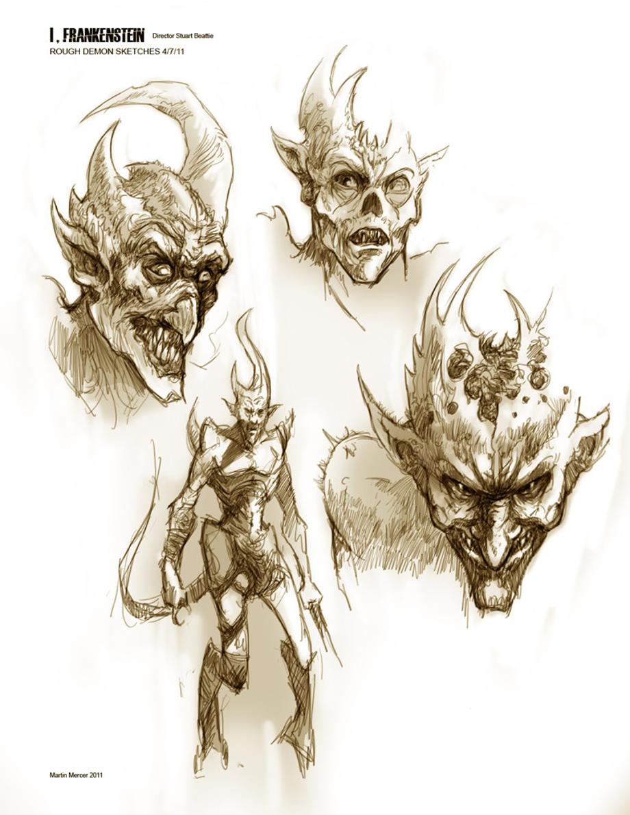 Below, you will find pitch/pre-production artwork that Martin Mercer illustrated for Stuart Beattie's I, Frankenstein. The pitch artwork was helped the film get green-lit. His demon designs influenced producers to use demons and not vampires as the film's antagonists.