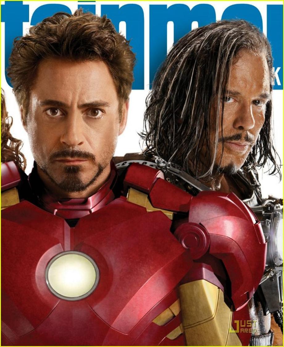 We've found some even better pics now of the Entertainment Weekly pics just released featuring Robert Downey Jr. in the Iron Man armor alongside Mickey Rourke as Whiplash and Scarlett Johansson as the Black Widow!