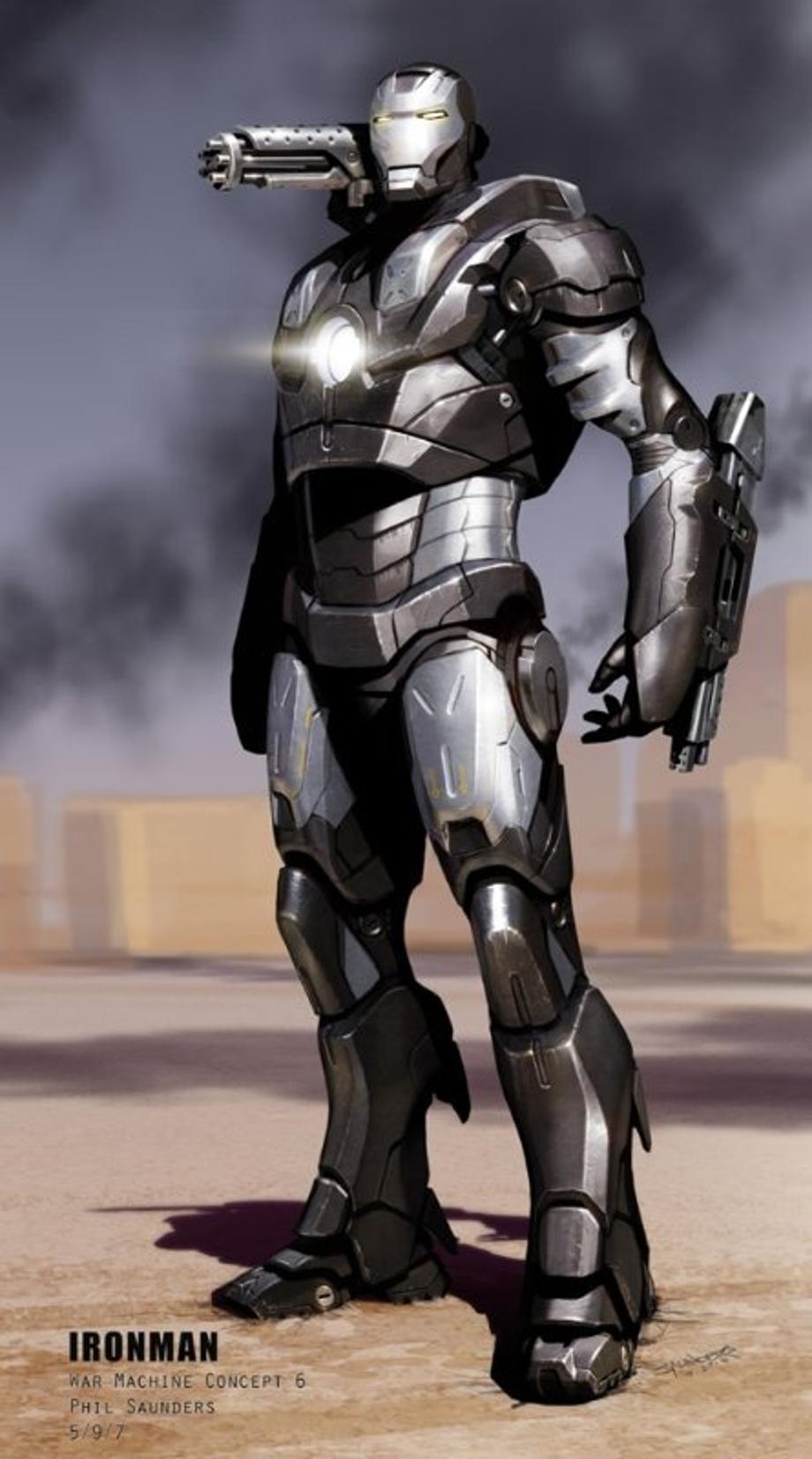 SlashFilm has discovered a War Machine pic in the slew of Iron Man concept art that hit the web a couple weeks ago. You may remember that Yahoo posted the images created for Jon Favreau’s Iron Man. Hidden in the piles of artwork is Phil Saunders concept art of War Machine. Now reposted for your enjoyment.