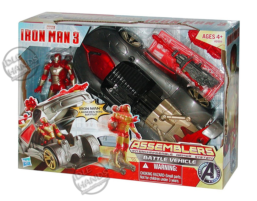 As you can see below, the toy version of Tony Stark's new automobile, The Iron Assemblers Battle Vehicle features Iron Man launching from the front section. Idle Hands once again confirmed that the packaging says, "the toy mimics a scene directly from the film!"