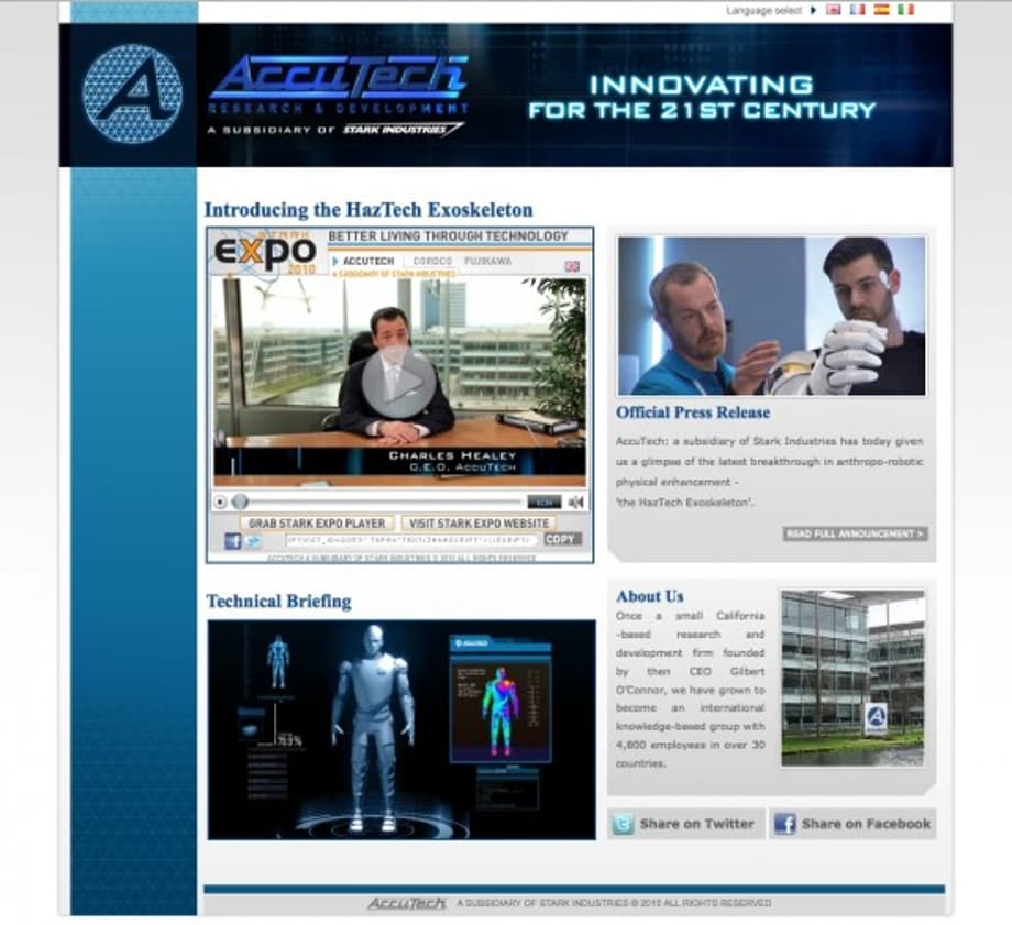 SlashFilm has just pointed out a new viral website for Paramount Pictures and Marvel Entertainment’s Iron Man 2. The site is for AccuTech Research & Development, an accessory of Stark Industries.