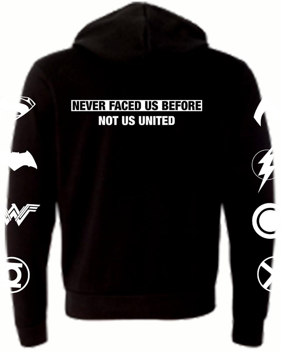 The back of the hoodie includes a line which is also presumably from Zack Snyder's