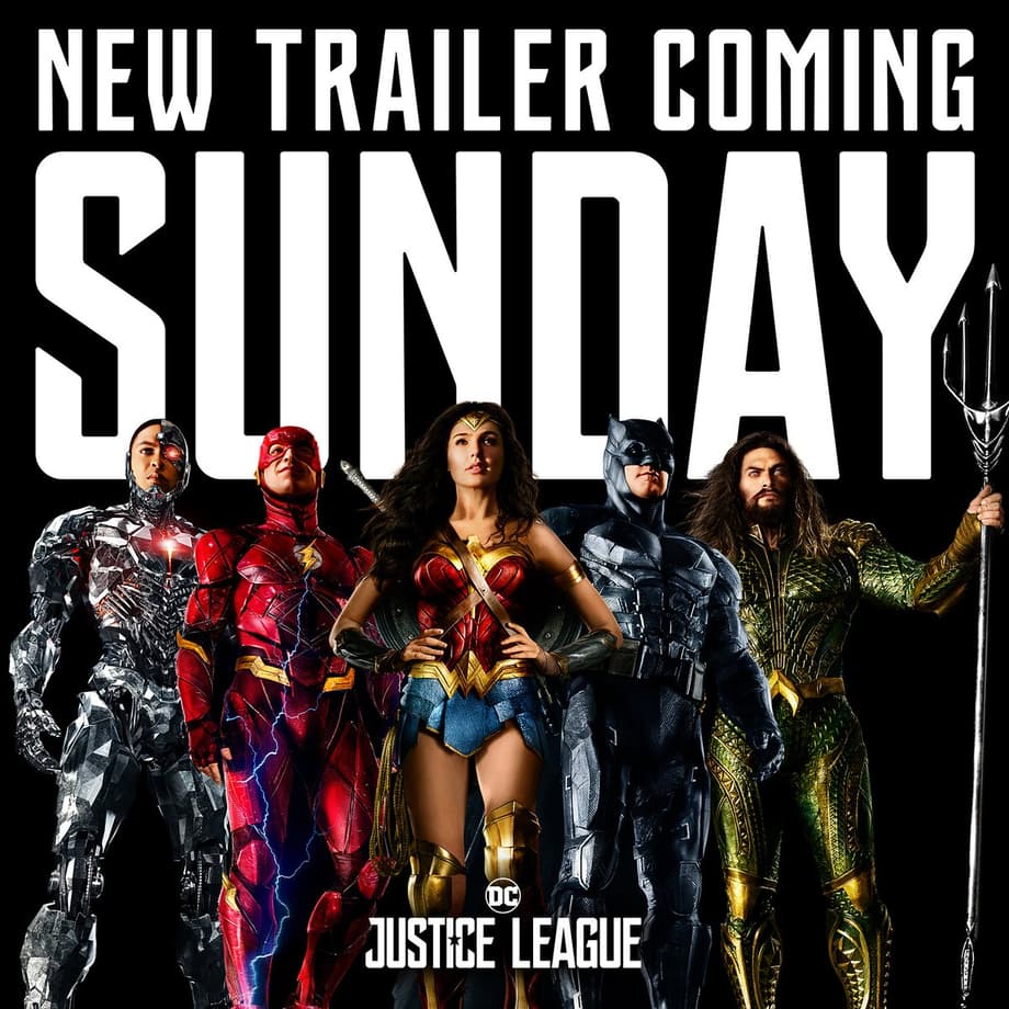 Warner Bros. has released a new image of the iconic DC Comics team assembled (minus Superman, obviously) ahead of Sunday's new trailer for Justice League and we now know what time it will be online...