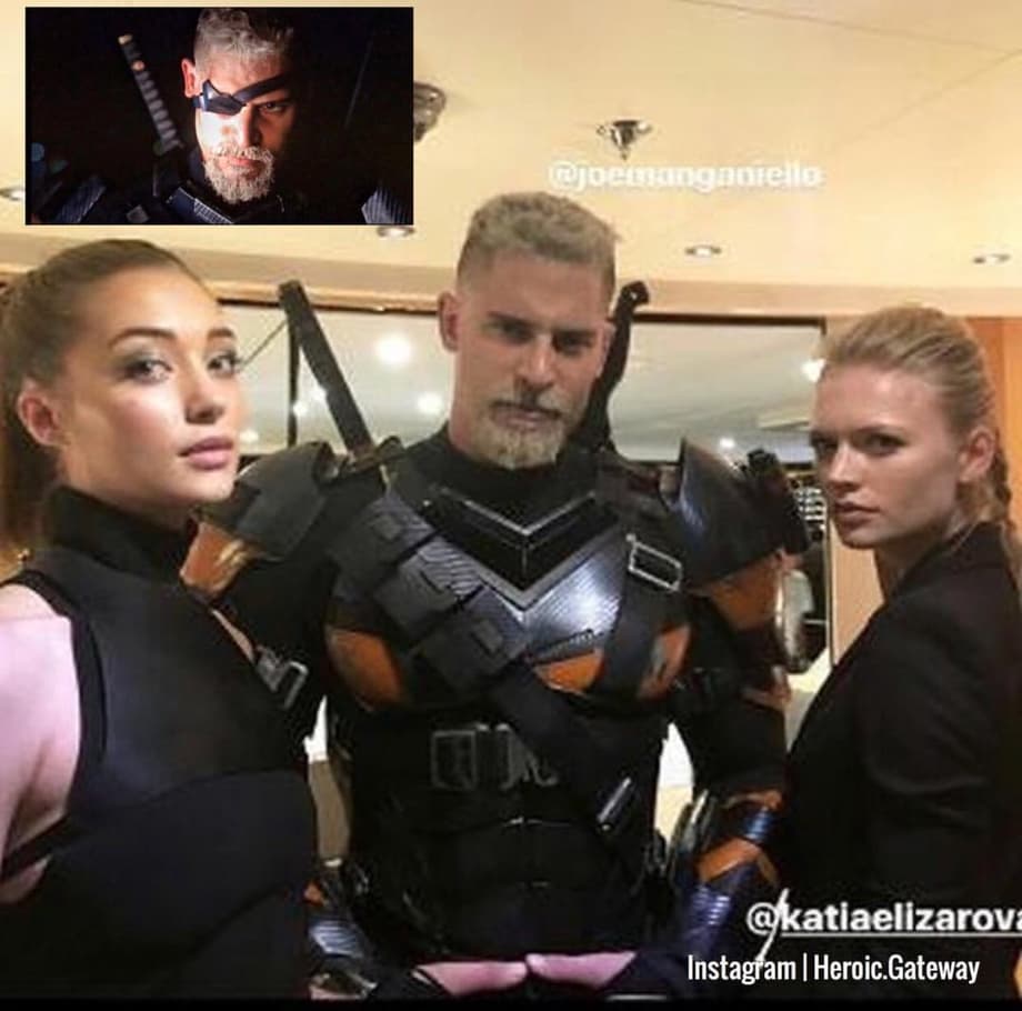 If you've sat through the Justice League end-credits you'll know that the first big-screen incarnation of Deathstroke is introduced as makes his way to a meeting with Lex Luthor, and now we have a new behind-the-scenes glimpse of former True Blood actor Joe Manganiello in full costume (well, sans eye-patch) as a very comic-accurate-looking Slade Wilson.