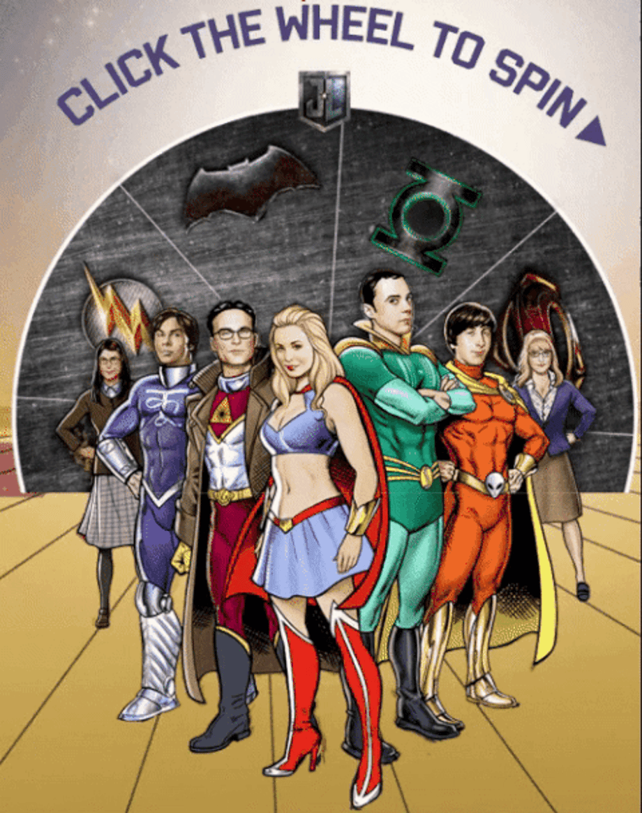 Now, it seems a new The Big Bang Theory tie-in promo may have revealed one of the biggest secrets of the fim. As you can see from the image below, a logo for the Green Lantern has appeared with logos for the rest of the team members, The Flash, Batman and Superman. Spinning the wheel also reveals logos for Wonder Woman, Cyborg and Aquaman.
