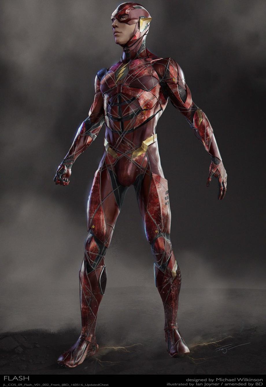 A new piece of concept art for Justice League has been revealed and it provides a much closer look at the costume which will be worn by Ezra Miller's Scarlet Speedster in the highly anticipated release.