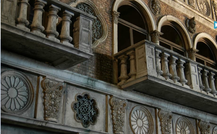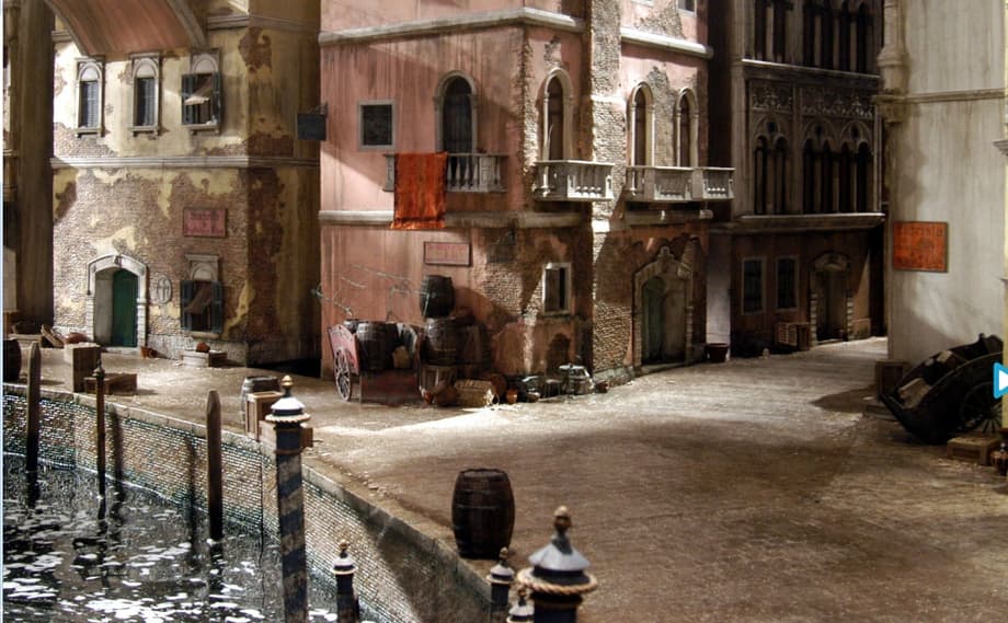 "Design, fabrication and photography of Venice miniature effects sequence: 1:5 scale stylized city of Venice with effects including radio-controlled and "endless wire" effects-rigged cars with puppets; car driving through Venice, car launch, exploding theater and sinking buildings. Fabrication and photography of 1:12 scale Tiger Bay English Wharf."