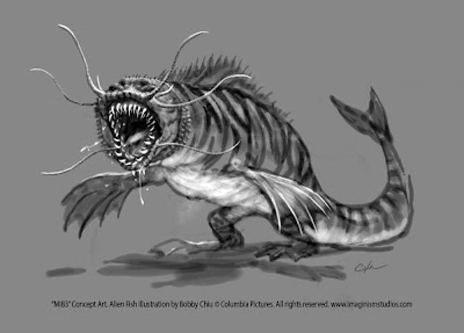 Conceptual artist Bobby Chiu has released his illustrations for the alien fish that is featured in a scene with Will Smith and Tommy Lee Jones at a Chinese restaurant.