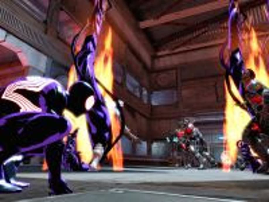 After we whittle down some small-time baddies, it's time to take the fight to Carnage, face to face. Quite literally, in fact, as this boss fight--along with several others in "Shattered Dimensions"--incorporates first-person elements to bring the player up close and personal with your foe's ugly mug! In this sequence, we use the left and right analog sticks to throw punches at Carnage's face and to avoid any incoming swings. Umbricht tells us that during these moments, there will sometimes be back-and-forth dialogue between Spider-Man and the villain. Unfortunately, Carnage isn't much of a talker, but Umbricht promises some very interesting conversations between Spidey and Deadpool--another Ultimate villain in SMSD.