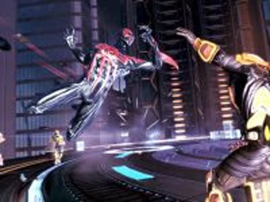 After catching up with Hobgoblin, the action shifts gears back to the web and fisticuffs-based combat. Shortly after landing a few blows on the Hobgoblin, the Public Eye--the city's corrupt police force--swoops in to apprehend Spidey. Thankfully, Spider-Man's arsenal of attacks prevents him from going down without a fight! Umbricht quickly points out that Spider-Man 2099's moves allow us to close the gap between distant foes. When engaging far away enemies, Spidey quickly dashes over to them and starts pounding with his razor-sharp claws and acrobatic moves, rapidly zipping between each attacker and dodging incoming strikes. We also activate a special Spidey ability that lets us slow down time to dish out some rapid-fire hits! The combat feels fluid and precise, and totally fits of our future Wallcrawler.