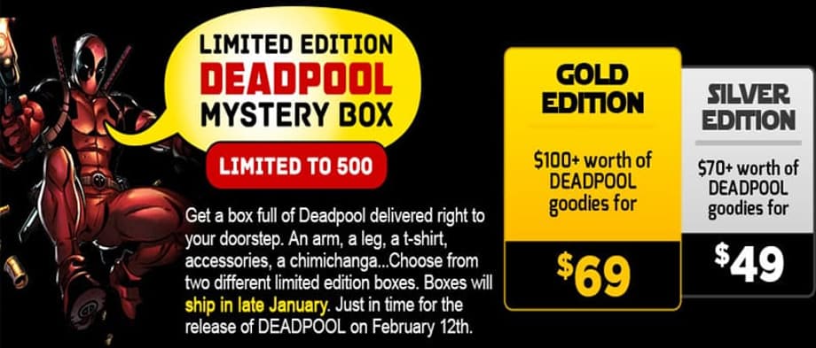 With limited quantities, the Deadpool HeroBox comes in two different flavors. One is Silver and contains 70 dollars worth of stuff for $49 while our Gold has 100 bucks worth of stuff for $69! We toiled the lands day and night for you guys. You get tons and tons of stuff that you will absolutely adore much like your coveted Regenerating Degenerate. Hey look, I figured out why the Merc with a Mouth wasn't around to help us work the Deadpool Fields...he was off stealing the Death Star plans! Guess we don't need to watch Rogue One now, eh?