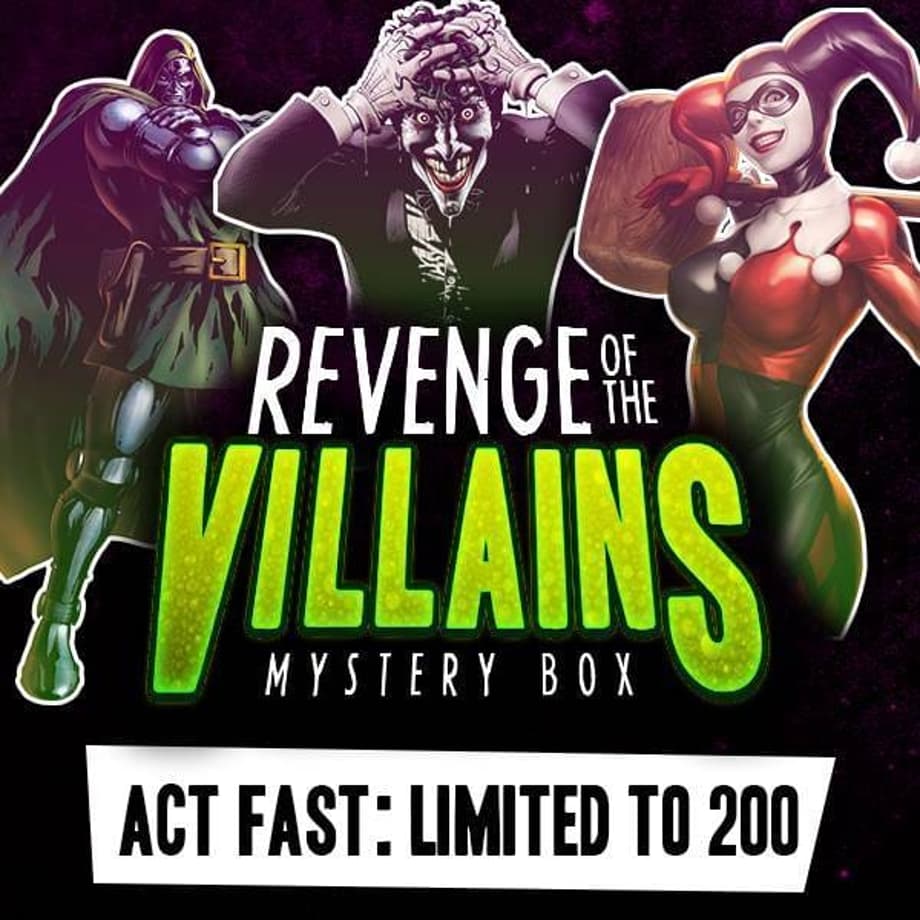 So you've probably already heard of our crazy-sweet HeroBox which is our version of the popular mystery gift box. We take 70 dollars worth of stuff and cram it into this box which we then sell for a paltry fifty bucks! You get a shirt and tons of other items that could be buttons, keychains, figures, glasses, plushies, all sorts of stuff...you know the drill. We do like to always throw you guys new choices, so for the month of October we created the VillainBox! You guys loved that so much that the bloody thing sold out in less than 48 hours. You would've thought that Kevin Spacey was sending the thing to Brad Pitt with the way it moved! Just like the villains we put in, the VillainBox would not be gone for long and like the revolving door of Arkham, it has RETURNED! I think the Joker from the 1989 Batman movie sent one of these to Vicky and it had one of those sweet gasmasks so you never know what you are going to get.