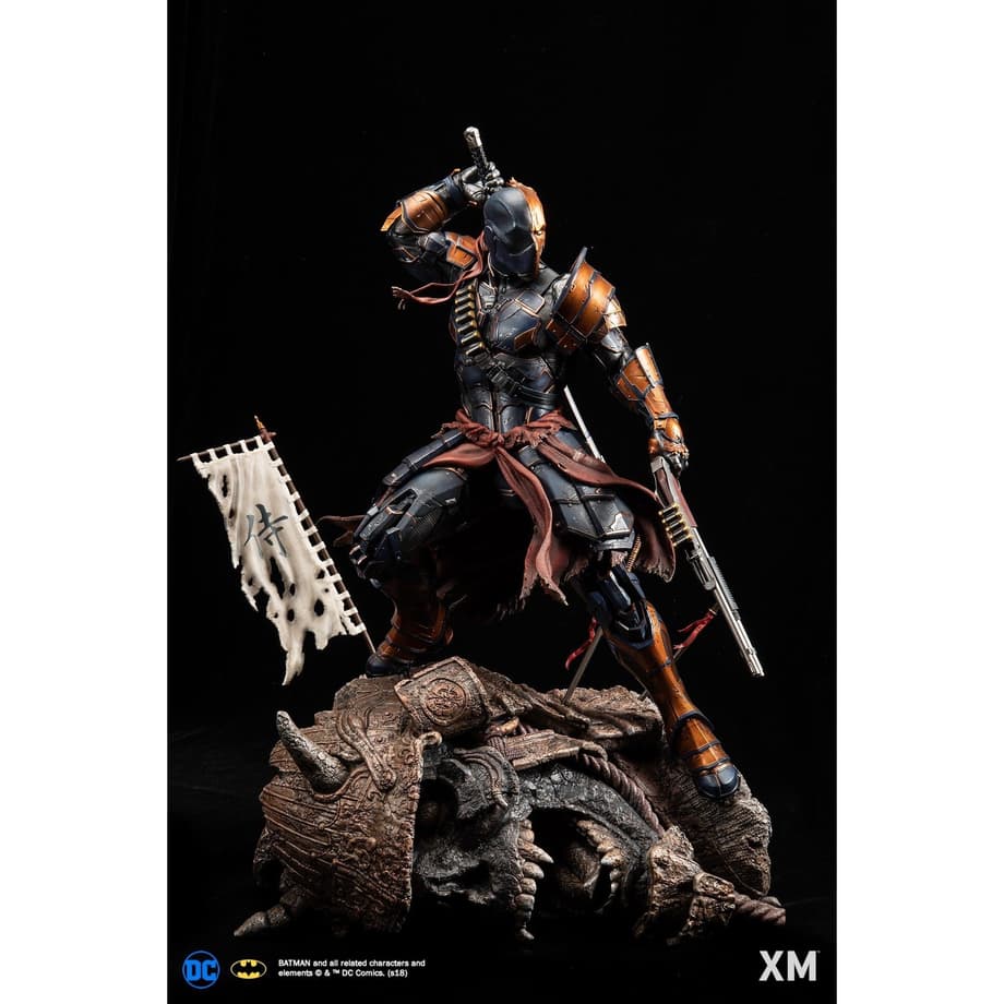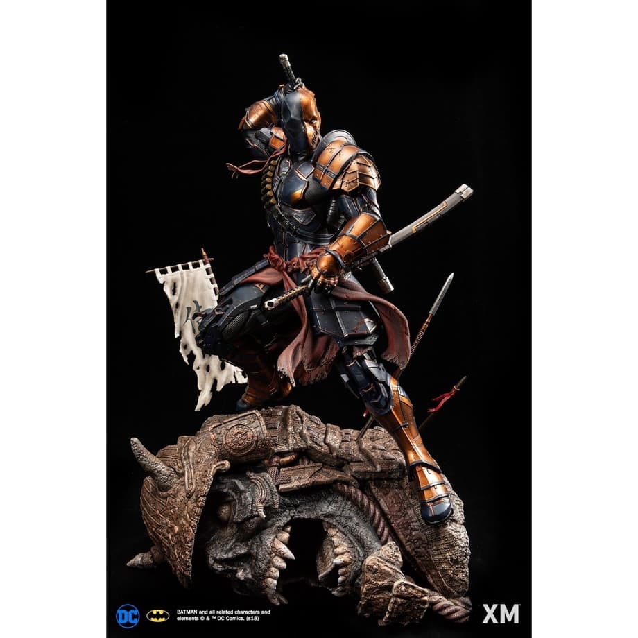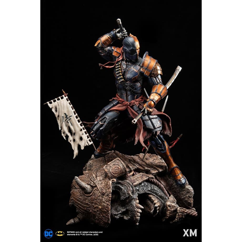 From the creative minds of XM Studios, Deathstroke is reimagined as a Demon Swordmaster in the now iconic XM Original Batman Samurai Series. Inspired by the samurai period's immaculate armor designs and weaponry, the master assasin is given due respect in an incredibly detailed statue, complete with his Demonic Mask, Samurai battle armor and switch out firearms. Standing ominously on a giant skeleton demon head and a flag with the written Kanji character 侍 symbolizing samurai, it is believed that when the unrelentless killer sets his sights on you, not even giants or the supernatural can stand in his way. Legend has it that anyone who sees the demon swordmaster is better off dead those who survive are driven mad by terror for the rest of time - a fate worse than death.