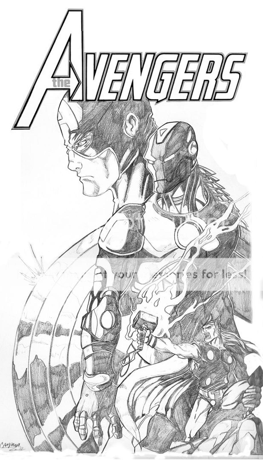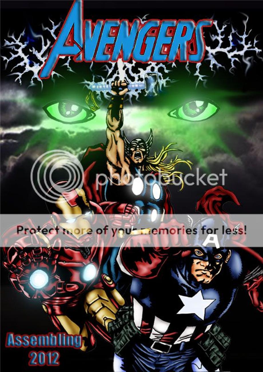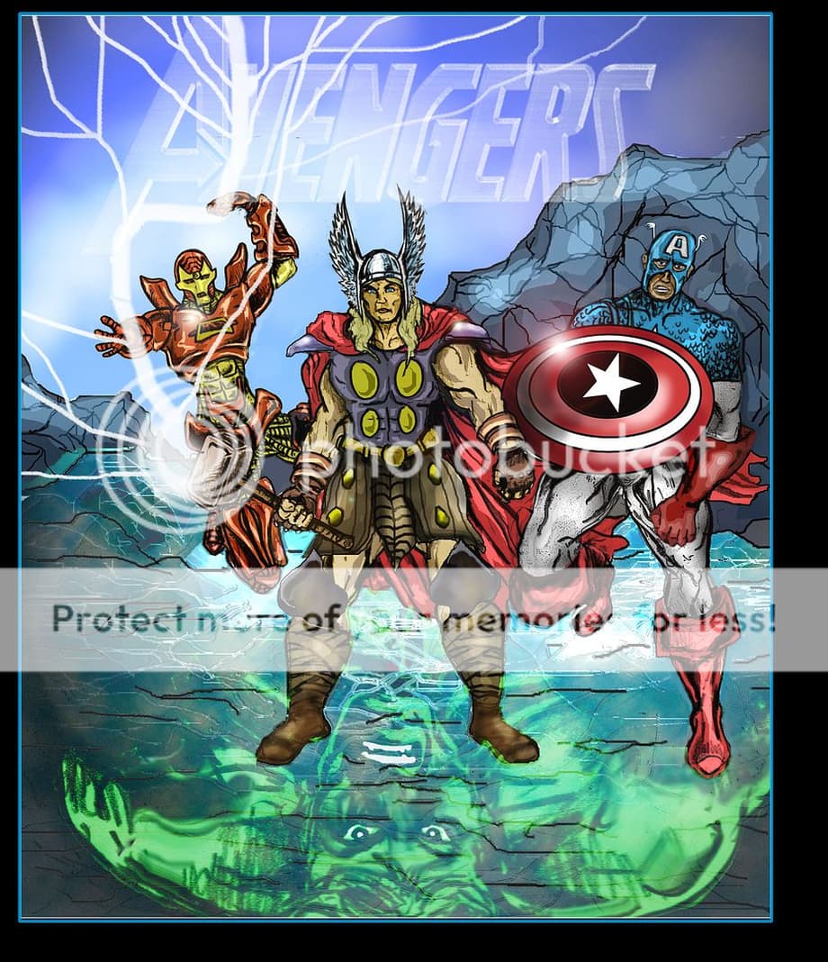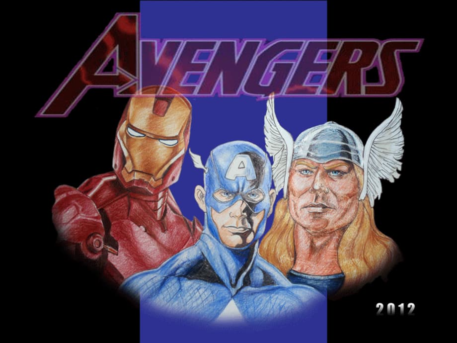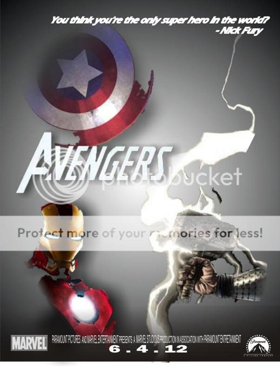 Create an original piece of art featuring Captain America, Iron Man and Thor in poster form for an Avengers movie. You can add many other heroes or villains to your project, as long as it features the team's three core members. The only stipulation is that your submission must be YOUR original work.