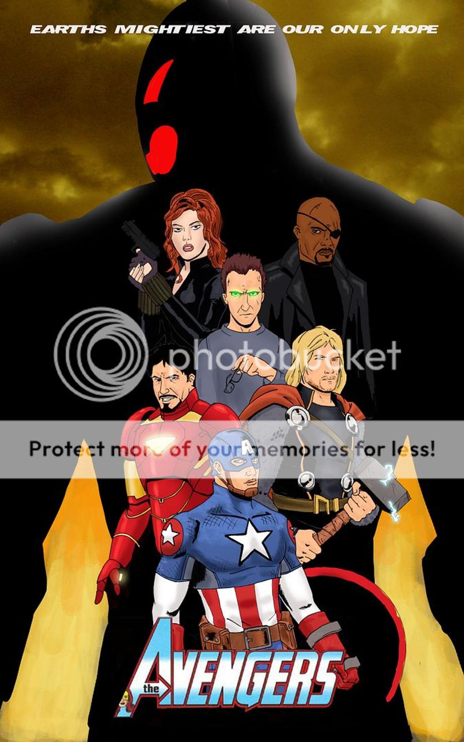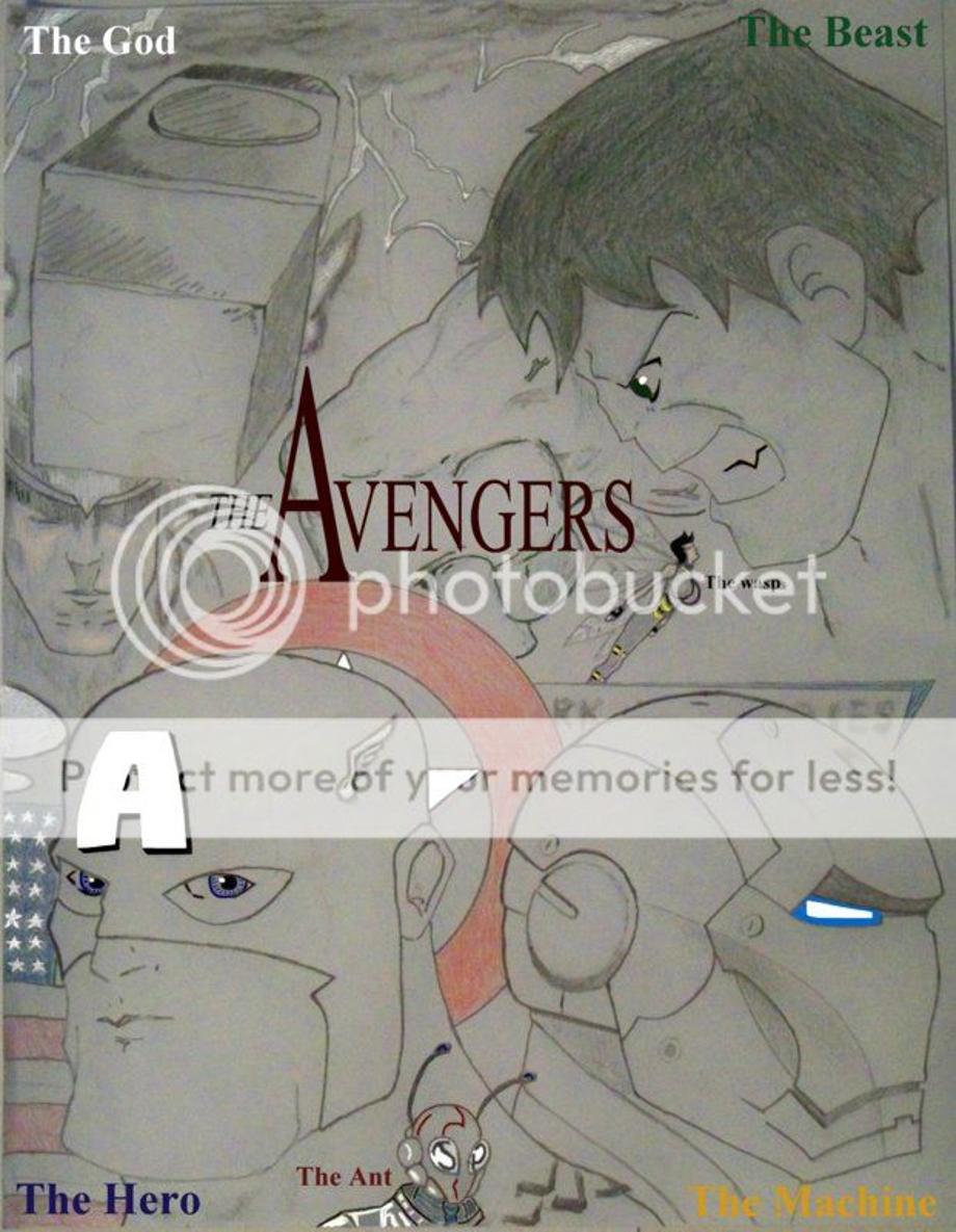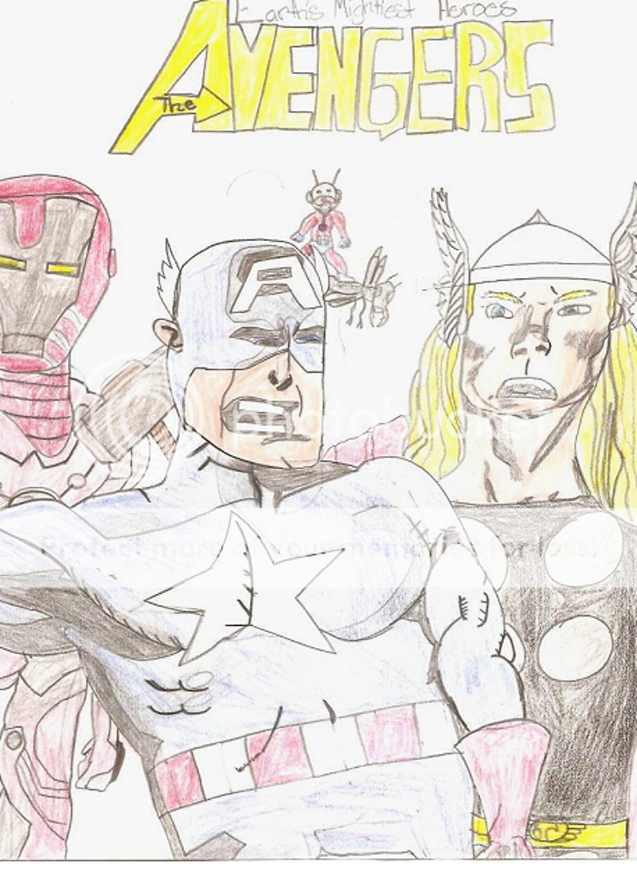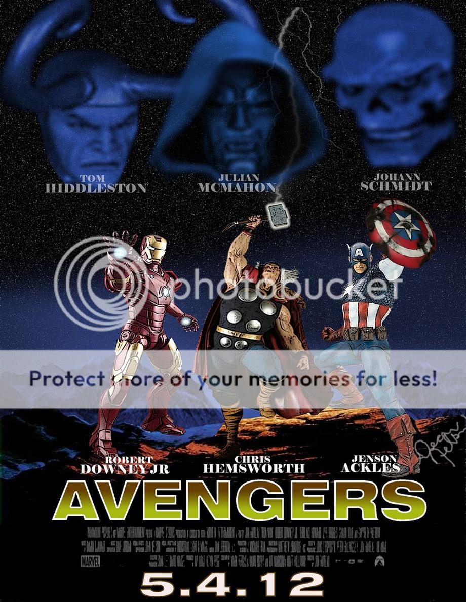 Create an original piece of art featuring Captain America, Iron Man and Thor in poster form for an Avengers movie. You can add many other heroes or villains to your project, as long as it features the team's three core members. The only stipulation is that your submission must be YOUR original work.
