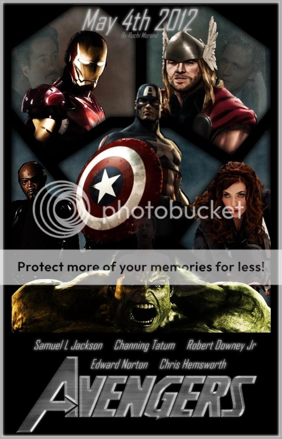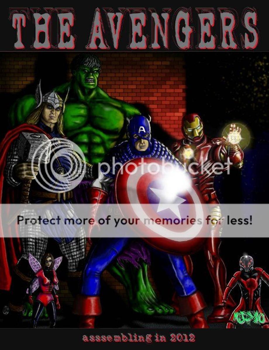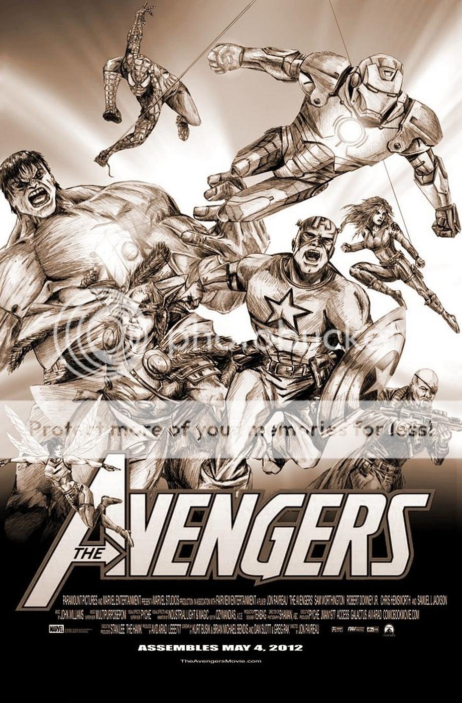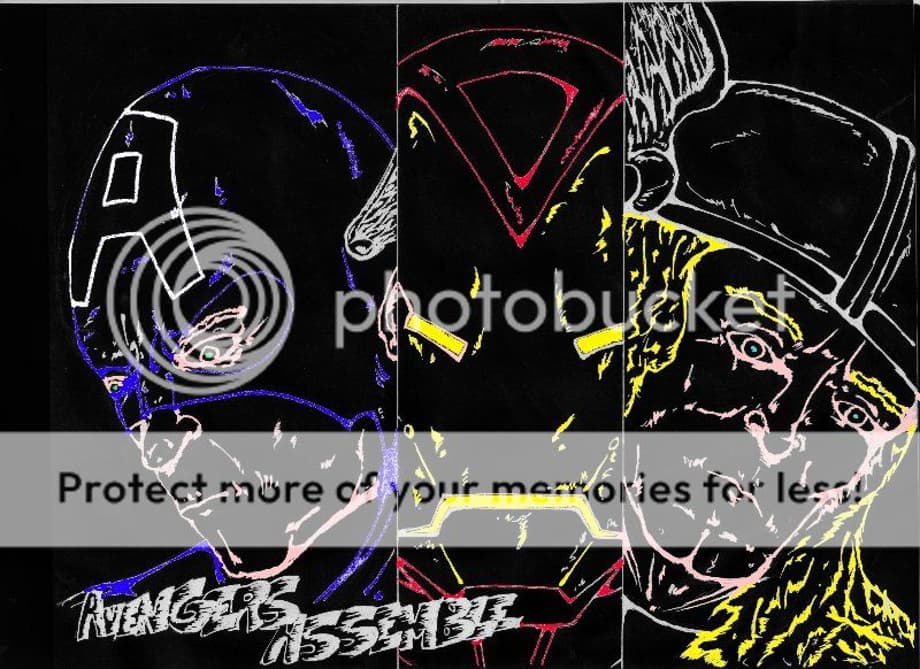 Create an original piece of art featuring Captain America, Iron Man and Thor in poster form for an Avengers movie. You can add many other heroes or villains to your project, as long as it features the team's three core members. The only stipulation is that your submission must be YOUR original work.
