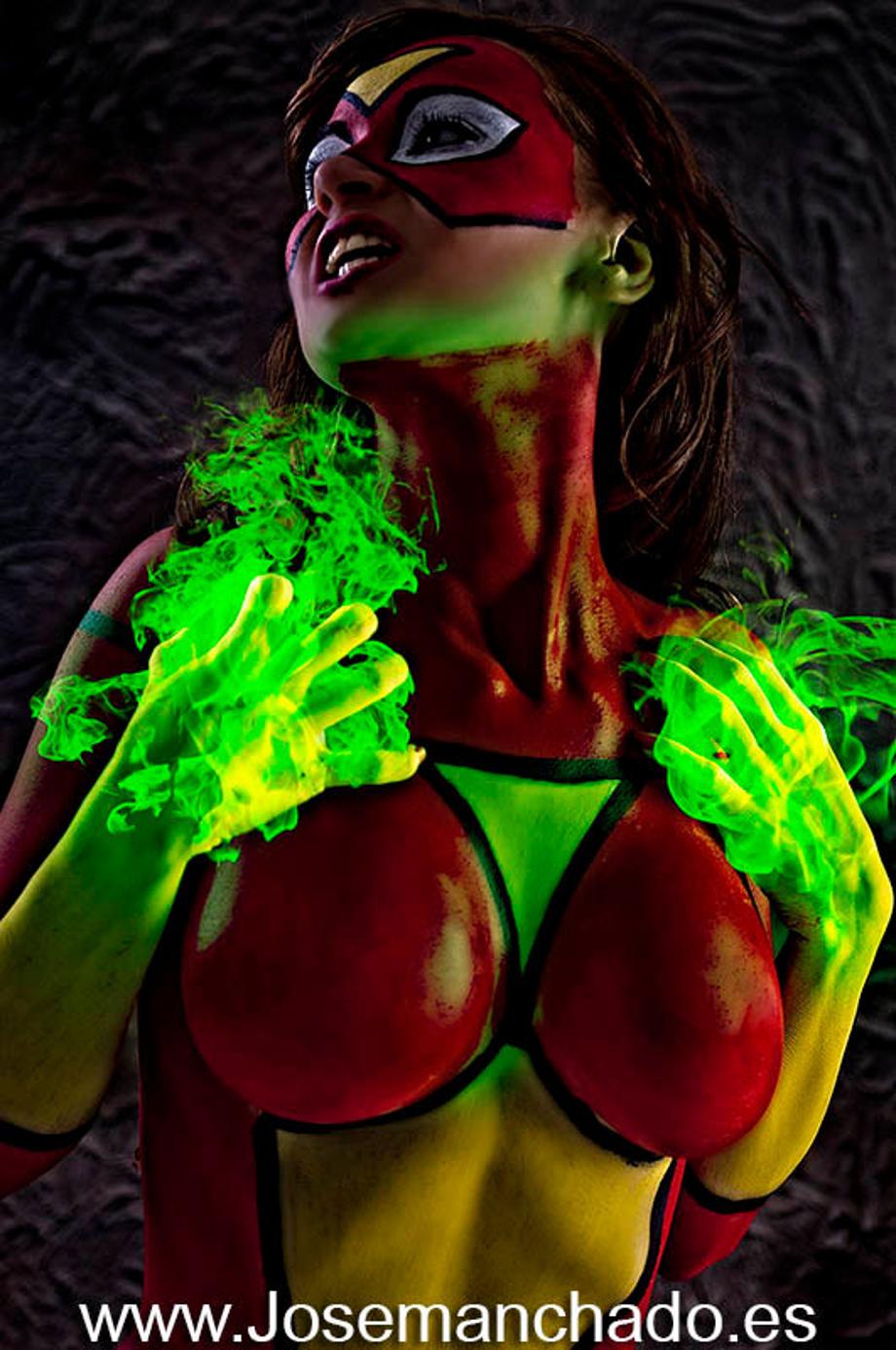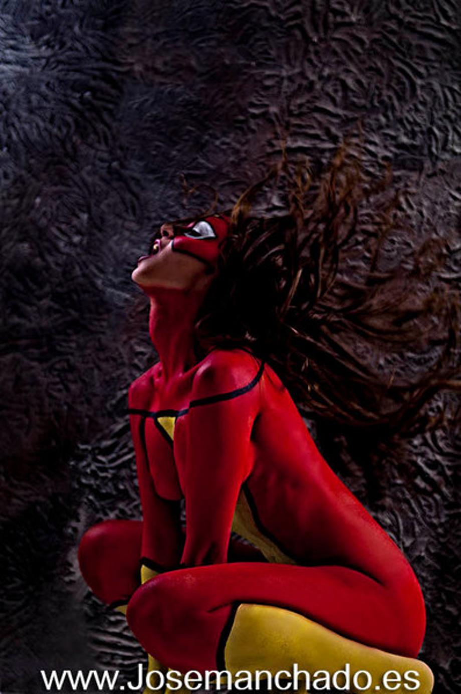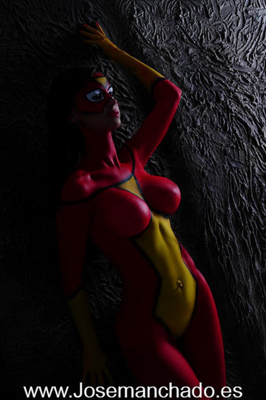 Photographer, Jose Manchado, put together some photoshoots with beautiful women covered in body paint, portraying comic book characters: Catwoman (Selina Kyle), Spider-Woman (Jessica Drew), Magik (Illyana Rasputin) and Dagger (Tandy Bowen).