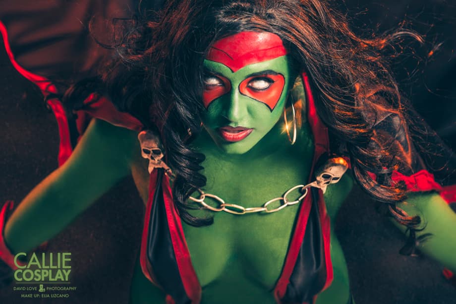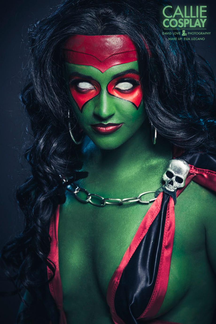 Callie Cosplay's (aka Leah Burroughs) latest shoot with David Love sees her go green as "the most dangerous woman in the universe"; Gamora from Guardians Of The Galaxy. Check out some excellent snaps after the jump..