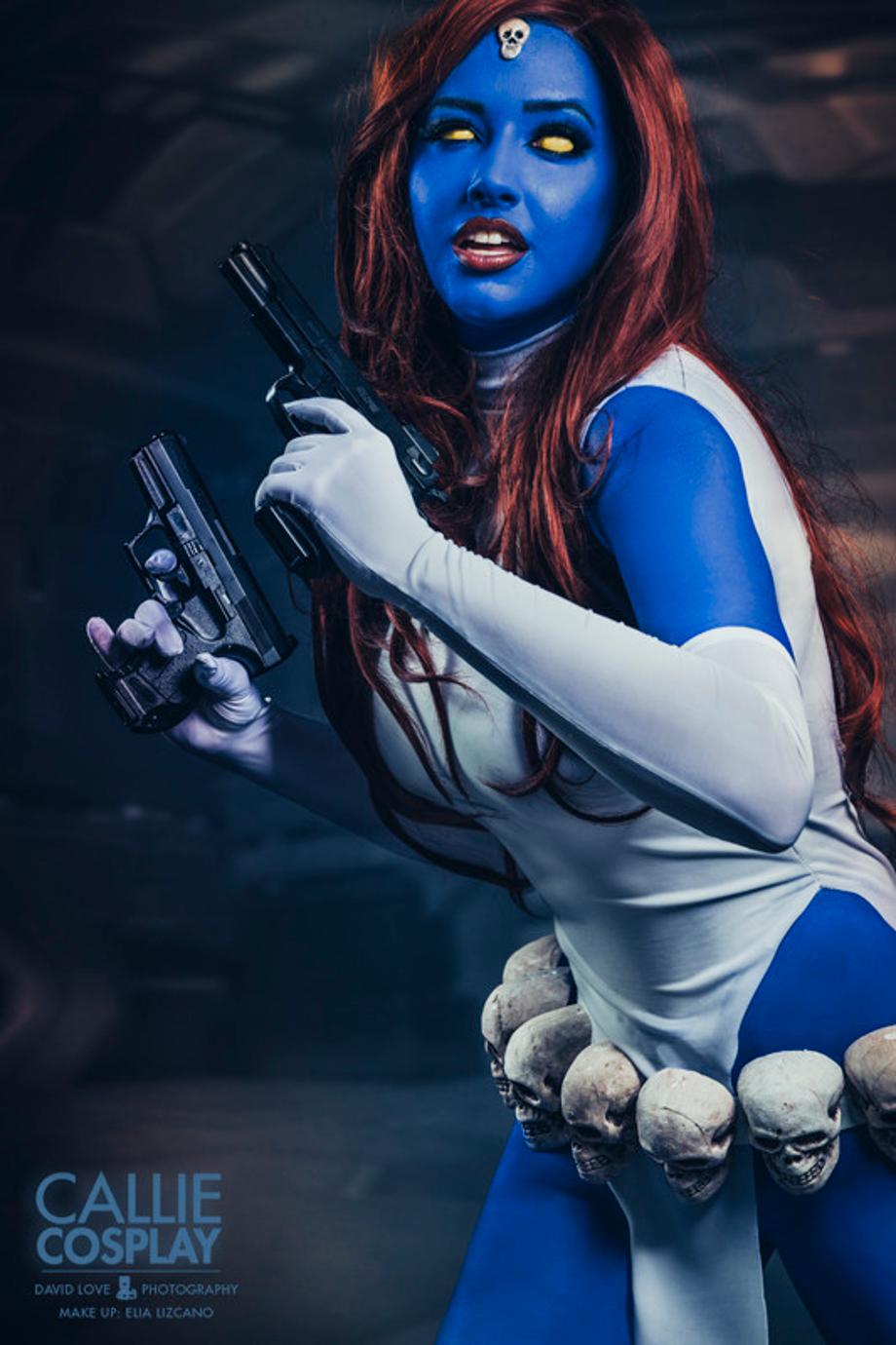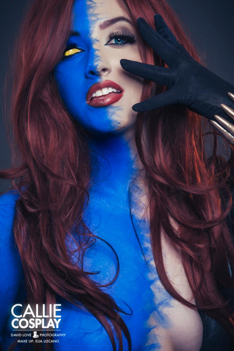 This latest batch of snaps see Callie pose as the classic comic book version of Raven Darkholme/Mystique, and also pay a little homage to her more cloths-phobic movie counterpart! So take a look after the jump, bearing in mind some pics might be a bit on the NSFW side.