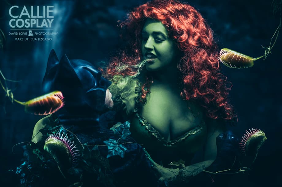 In this new series of snaps, Callie (aka Leah Burroughs) poses -- along with a caped 'n cowled friend -- as The Dark Knight's most intoxicating villain, Pamela "Poison Ivy" Isley. Take a look at some great shots after the jump.