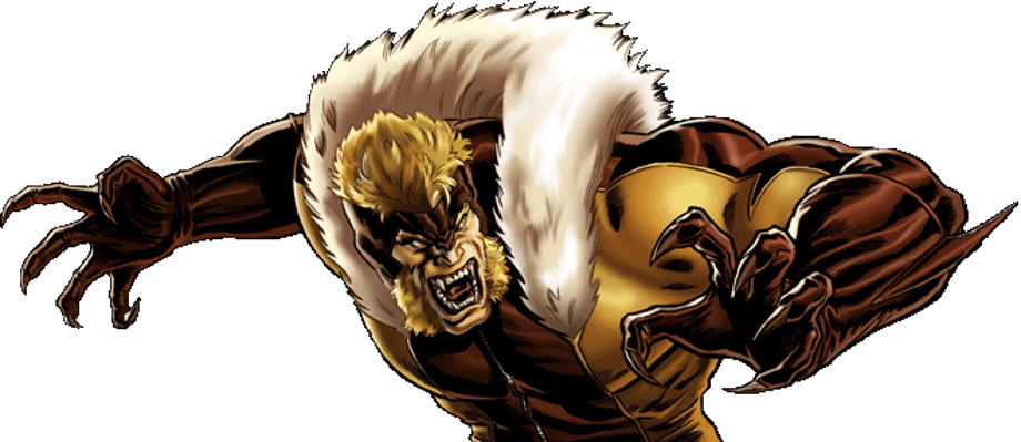 Sabretooth is a mutant possessing various superhuman attributes that are the result of genetic mutation and artificial enhancement. Sabretooth's primary mutant power is an accelerated healing factor that enables him to regenerate damaged or destroyed tissue with far greater speed and efficiency than an ordinary human. Sabretooth can fully heal from injuries that result in massive tissue and blood loss such as multiple gunshots, slashes, puncture wounds, and severe burns within only a few minutes. This mutant healing factor also renders Sabretooth highly resistant, possibly even totally immune, to disease. Sabretooth's healing powers, also, render him immune to most drugs and toxins, except within massive doses. sabretooth can lift [press] 118 tons. Sabretooth ages much slower than an ordinary human. Despite having a much greater chronological age, Sabretooth possesses the appearance and vitality of a man in the physical prime of his life. All of Sabretooth's natural mutant abilities stem from, at least partially, his accelerated healing factor.when sabretooth goes feral his brute strength increases without limit. - Marvel Wiki