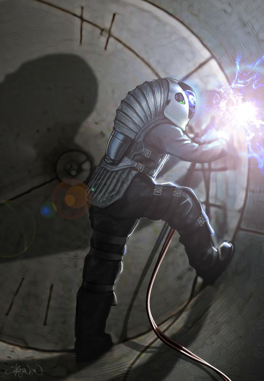 Keith Christensen: For X-Men, I worked on the post- apocalyptic stuff. Louise Mingenbach, the costume designer, wanted a darker, slightly futuristic, tactical look. I think my stuff was a bit too weird for her, but the stuff that ended up in the film looks pretty great. For Amazing Spider-Man 2, the Spider-Man suit went way more traditional, and the Electro suit (by necessity) is completely different from the comic. Even the purists should agree on that call.