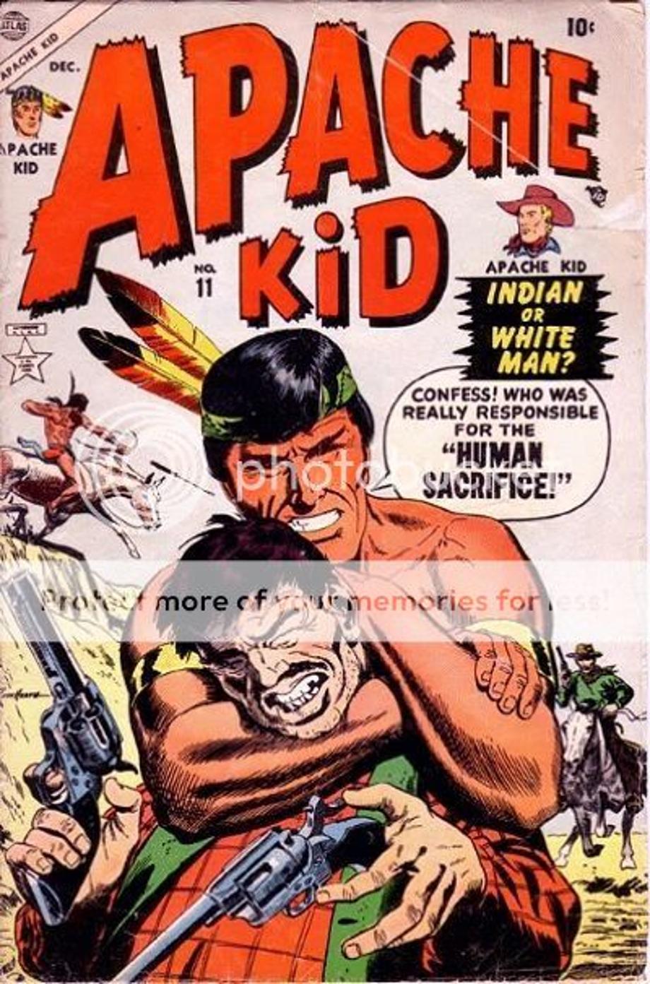 Apache Kid, which told the story of a Caucasian orphan raised by an Apache chief who grew up to wear a warpaint outfit to fight outlaws both white and Native American, and generally protect both groups of people. Unlike many other Western comics, Apache Kid generally presented the indigenous Americans in the same light as Caucasians, and made distinctions among the various tribes.