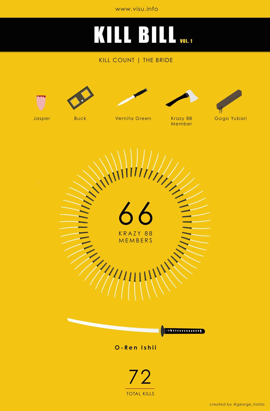 Always wondered how many victims fell to Uma Thurman's warrior with the blade? Check out the numbers now in a neat infographic from Visu.