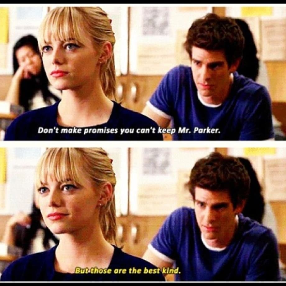 "Broken promises are the best kind" scene, makes it painfully clear that this is still a naïve, irresponsible, mistake-prone, self-absorbed hero who is perfectly willing to go against a dying Captain Stacy's last wishes and ultimately refuse to stay away from Gwen for his own selfish reasons, even though it would've resulted in her own safety.