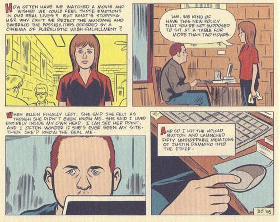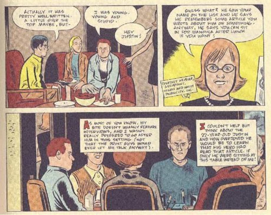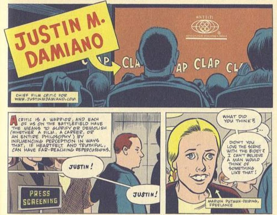 HowardCantour.com. It was a rather impressive film, focusing on the life of an online film critic (played by Jim Gaffigan). Though, there was one major issue with the short, it was lifted from a 2007 comic ("Justin M. Damiano") written and illustrated by Daniel Clowes. Keep in mind, Shia debuted