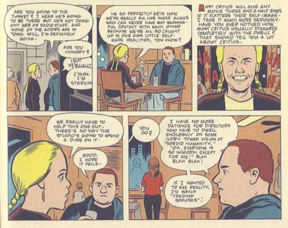 For Shia to insinuate that he was merely inspired by Clowes' work, and not own up to his theft makes me sick. There is nothing "inspired" about taking material from Clowes' comic WORD-FOR-WORD. Dialogue from the comic wasn't the only thing lifted. He shot the short so closely to Clowes' comic that it makes the comic come off as a storyboard for HowardCantour.com.