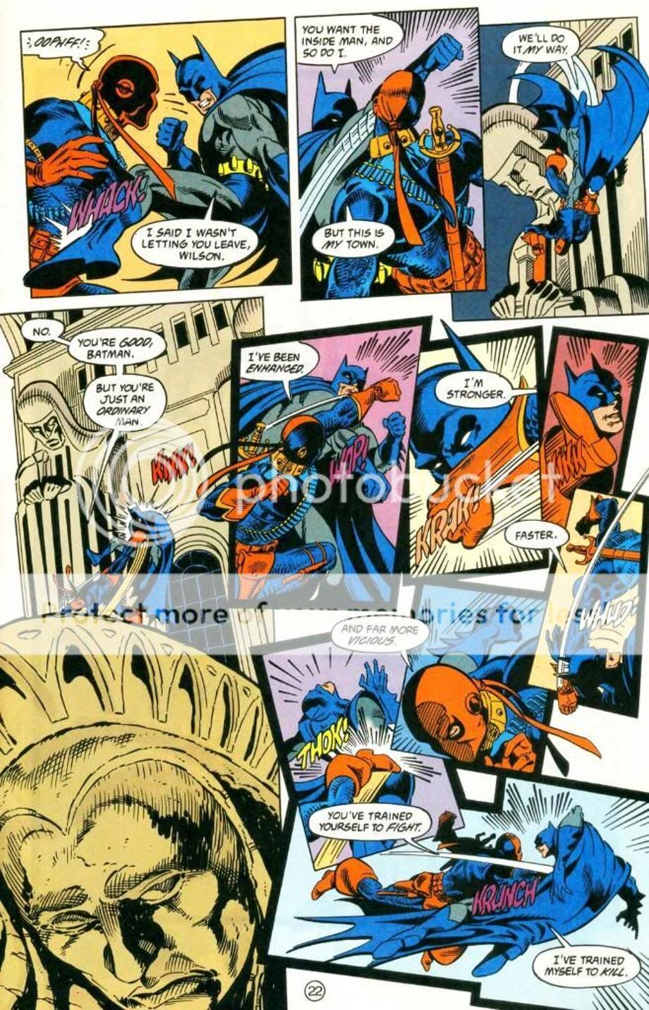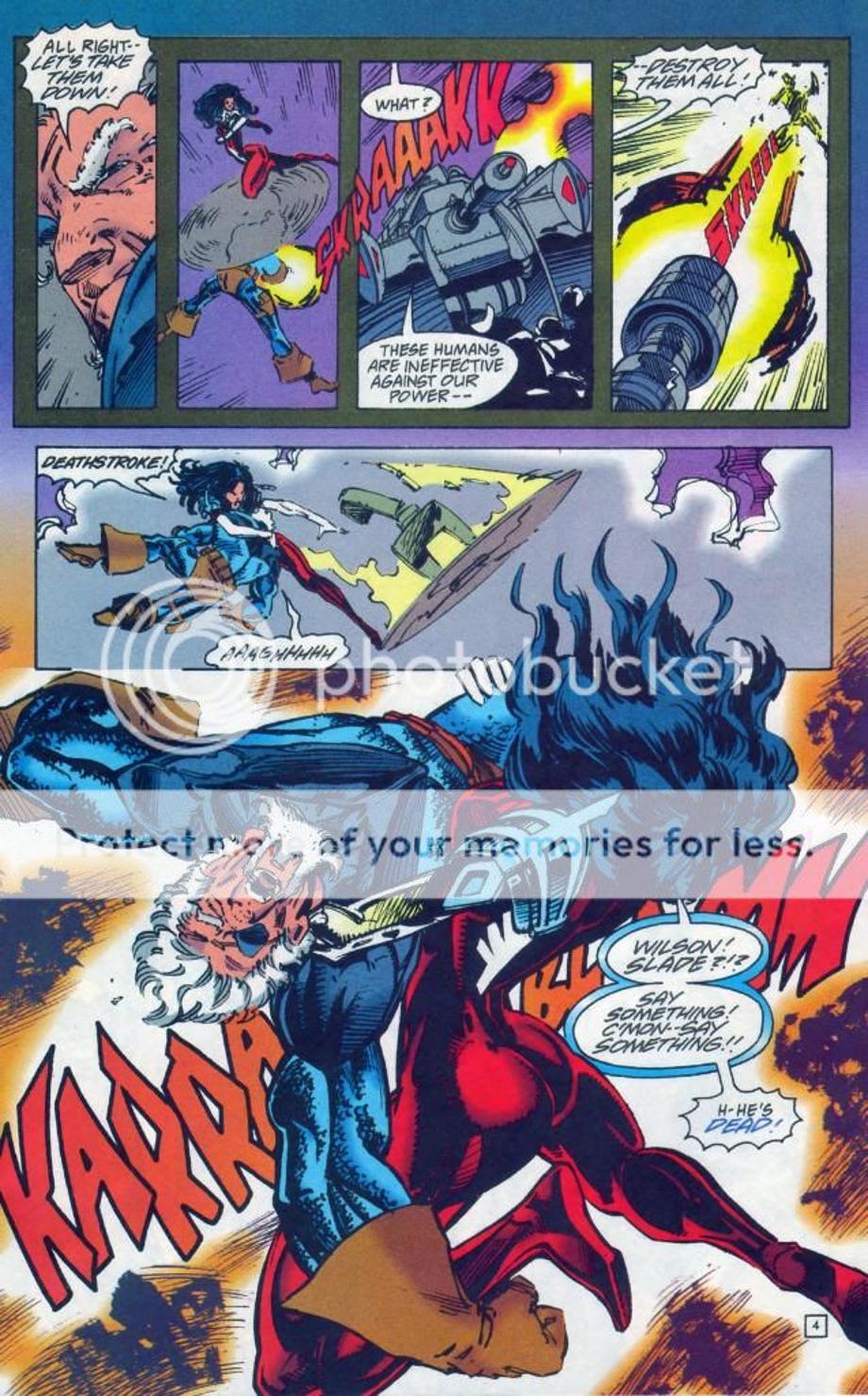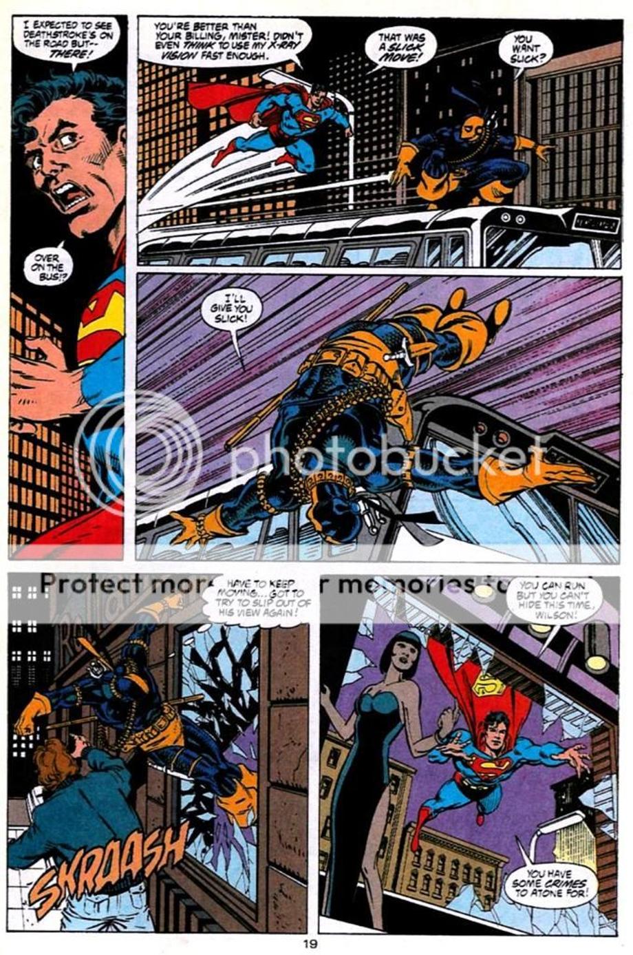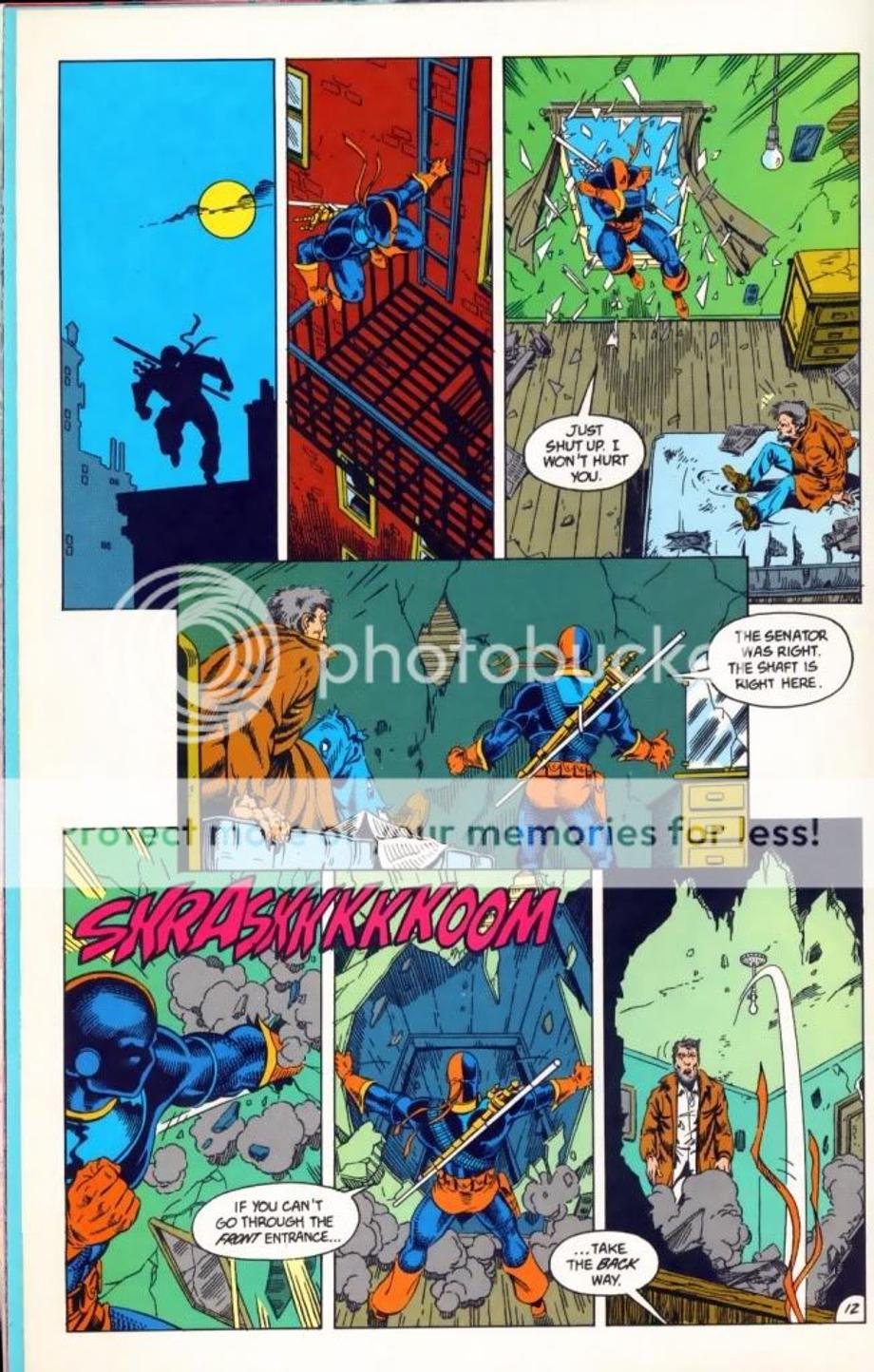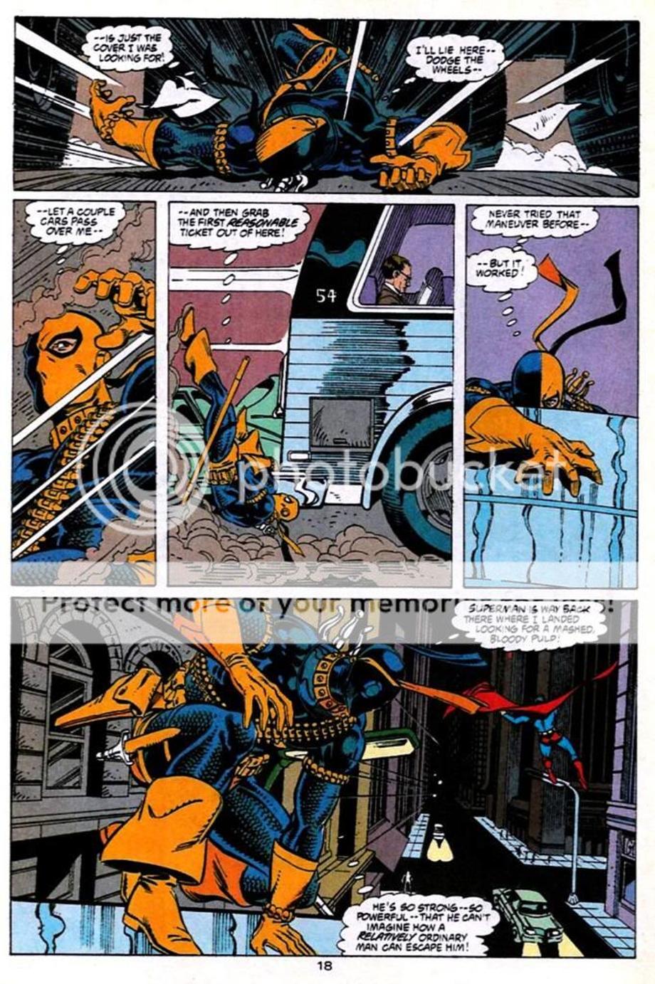 10. Nightwing is enraged over Slade killing his son, and Slade is suprisely lenient and tame.......still though, he easily takes all Nightwing's blows (letting him hit him), and floors him with a backhand. Then he makes sure he's alright.