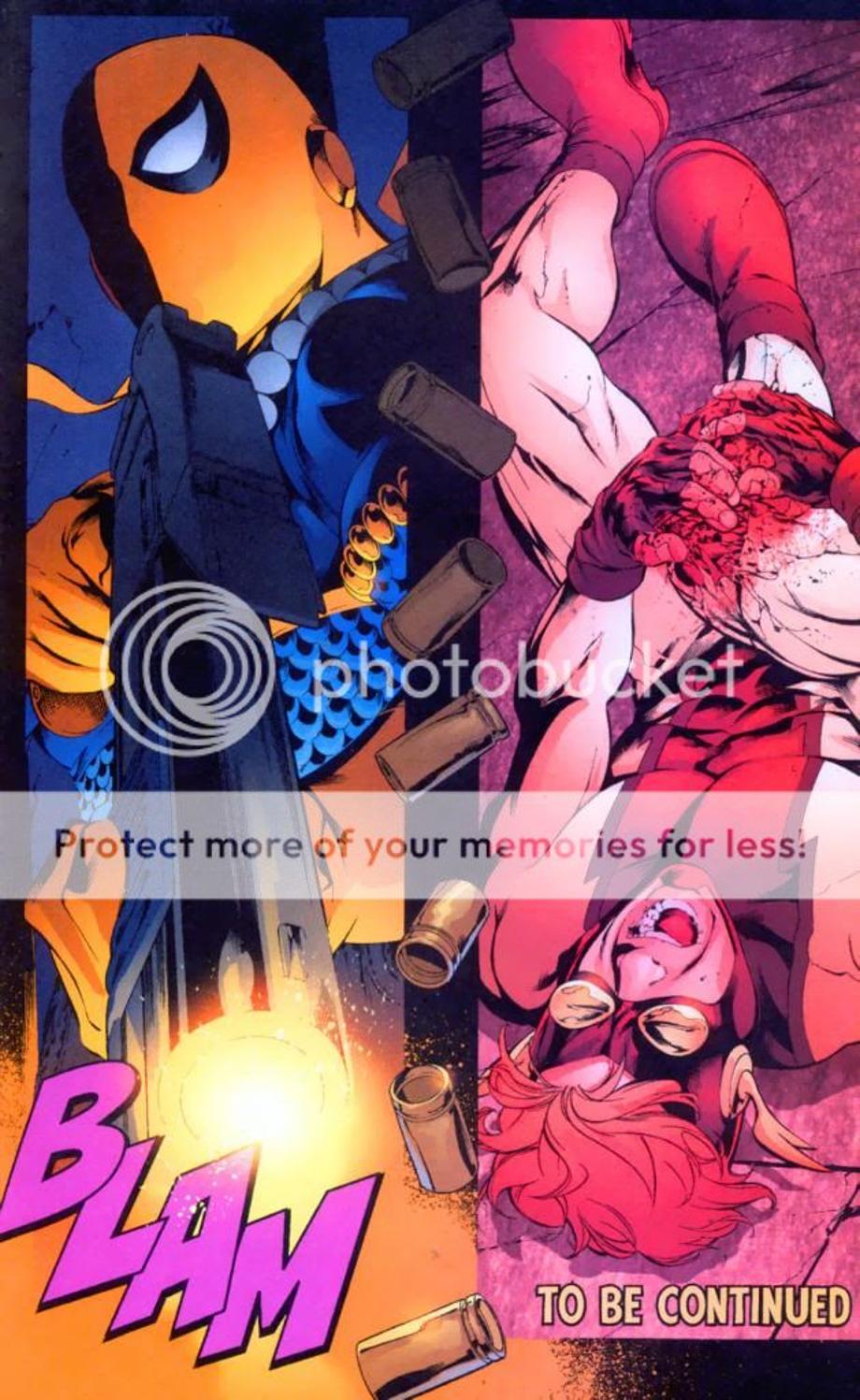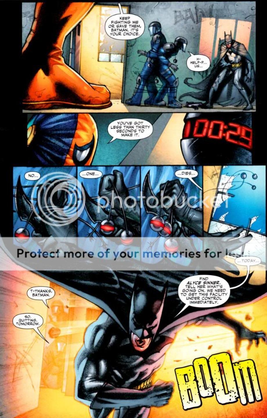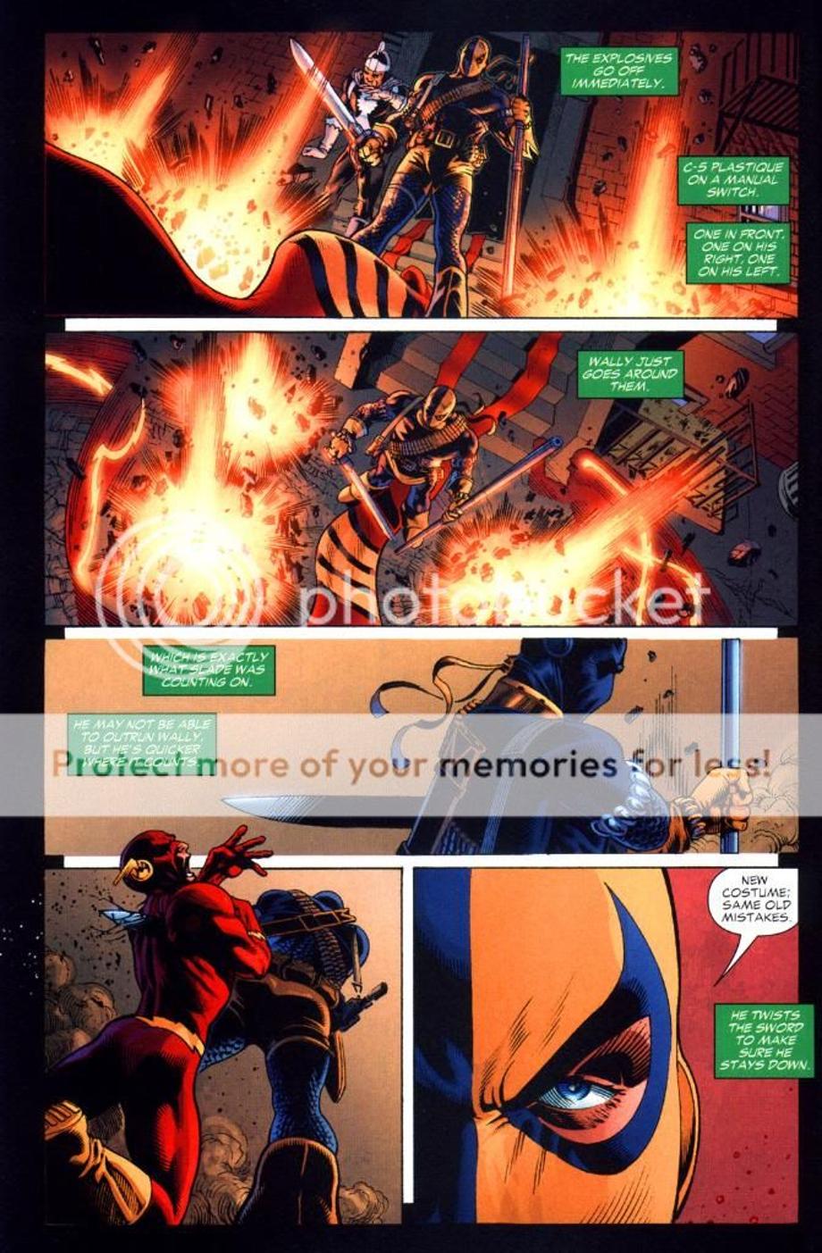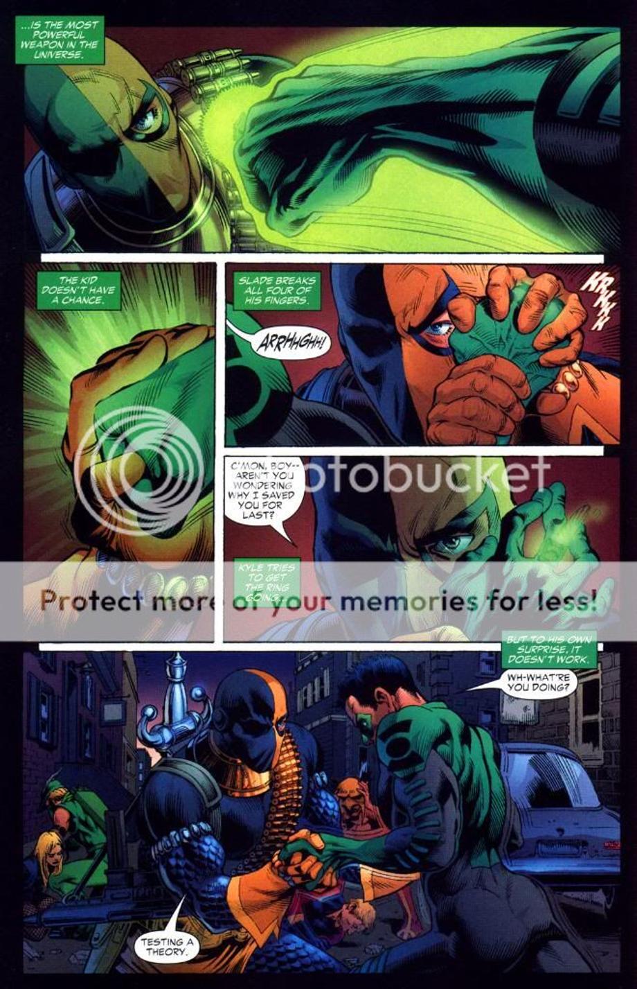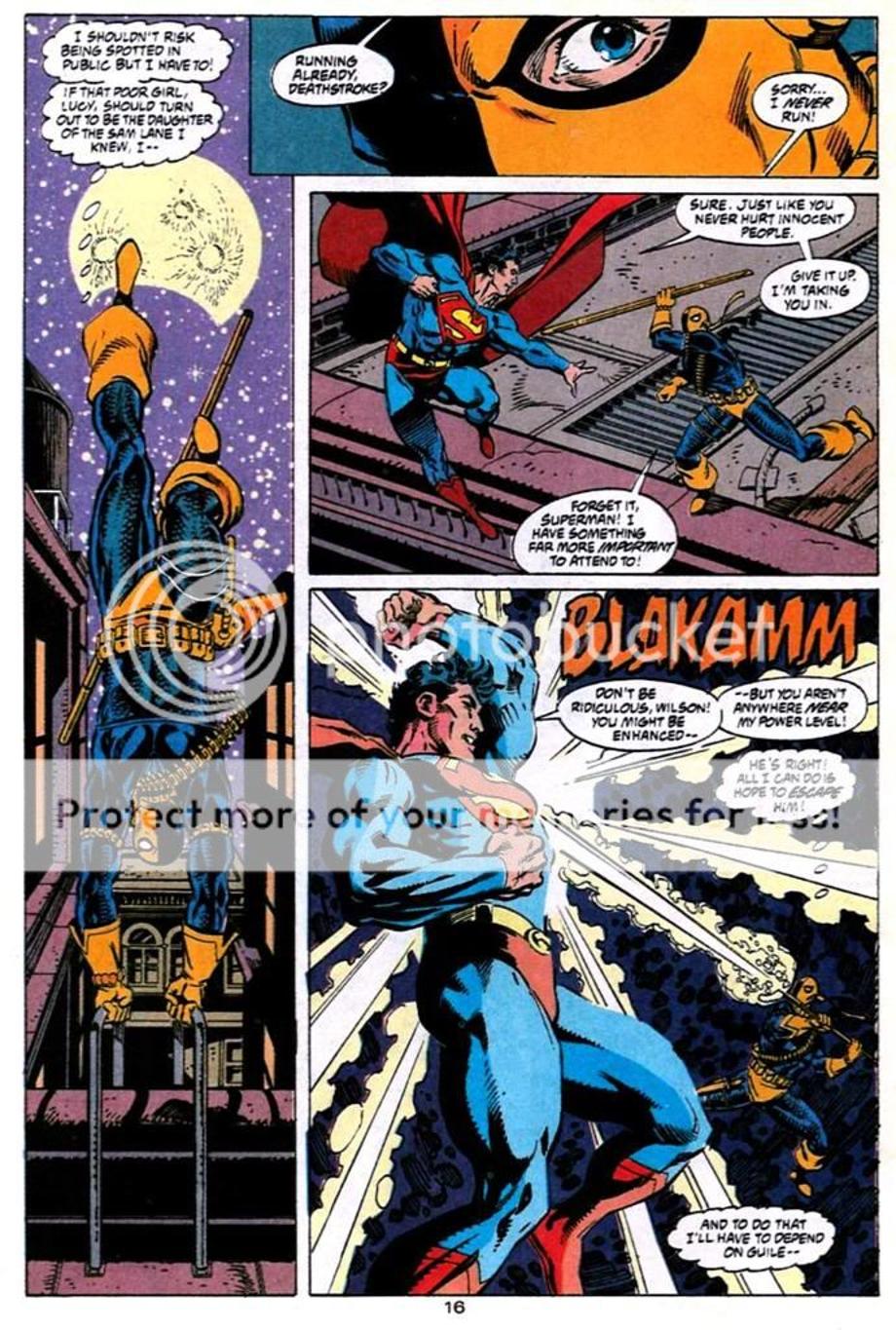 10. Nightwing is enraged over Slade killing his son, and Slade is suprisely lenient and tame.......still though, he easily takes all Nightwing's blows (letting him hit him), and floors him with a backhand. Then he makes sure he's alright.