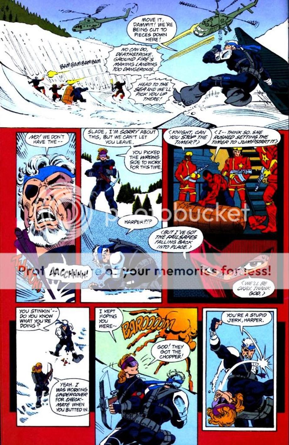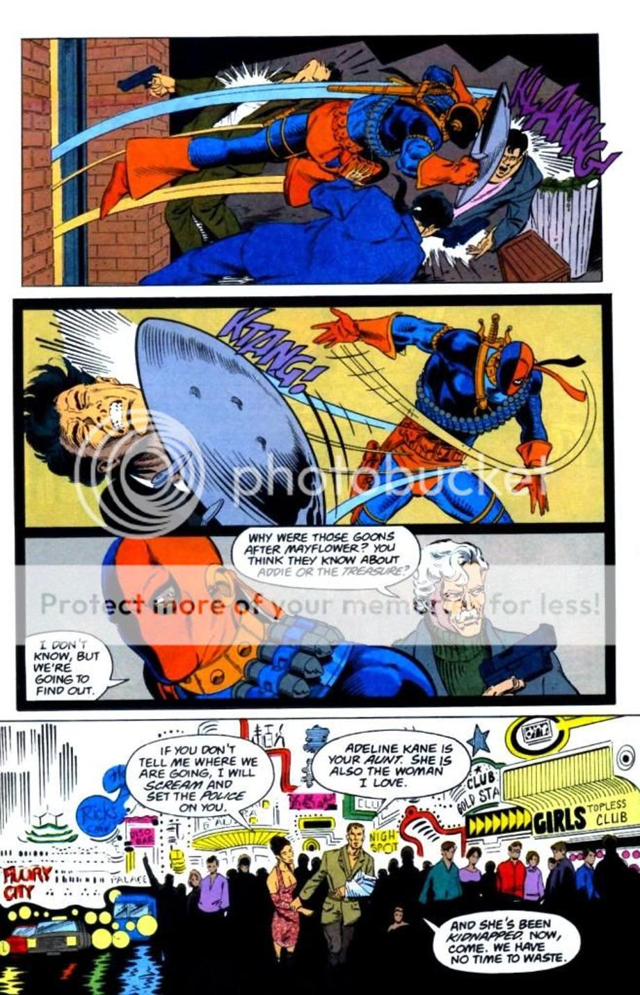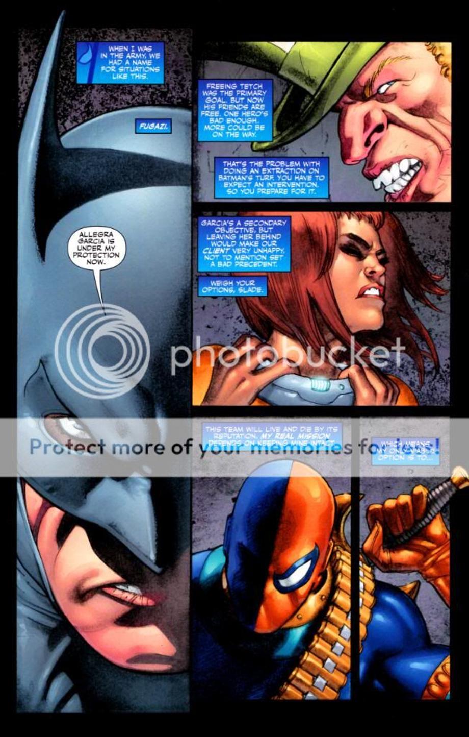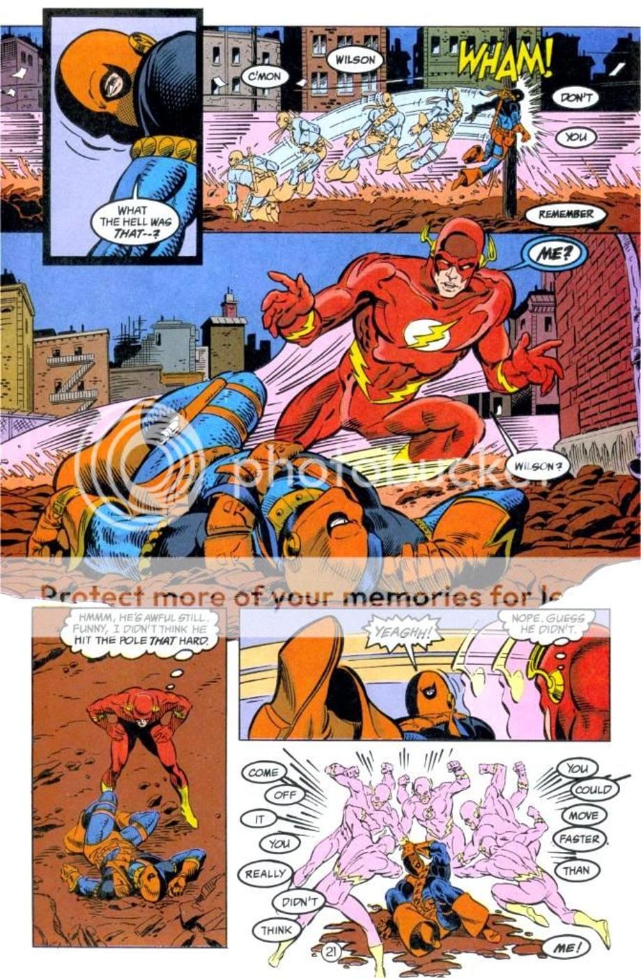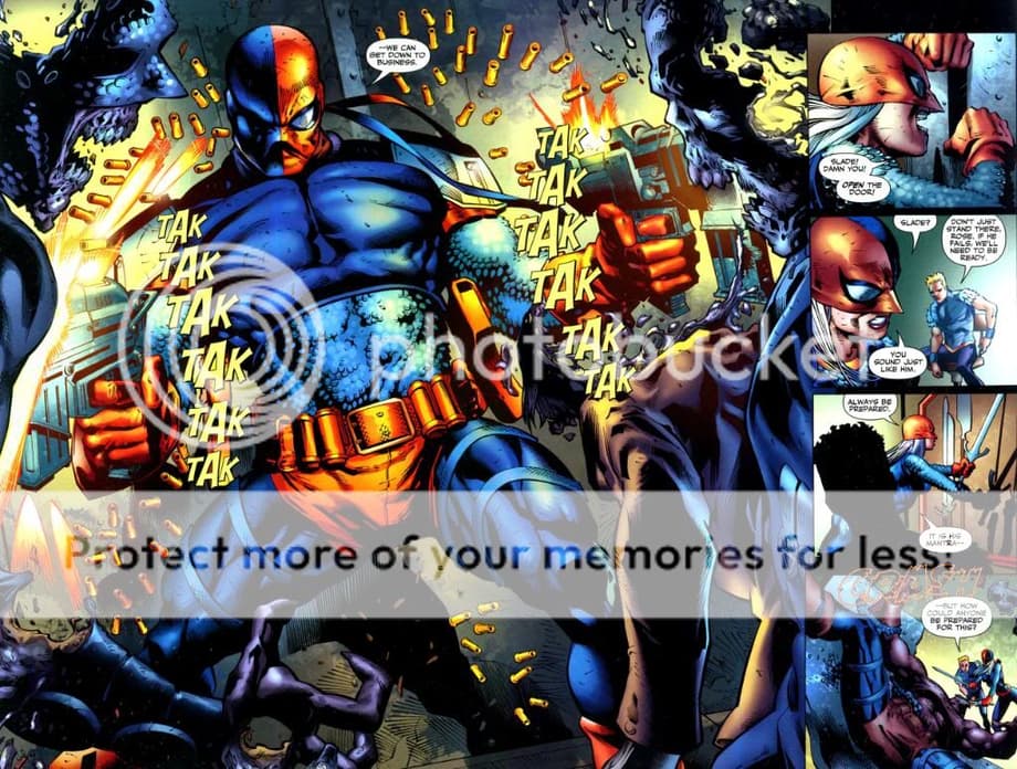 10. Nightwing is enraged over Slade killing his son, and Slade is suprisely lenient and tame.......still though, he easily takes all Nightwing's blows (letting him hit him), and floors him with a backhand. Then he makes sure he's alright.
