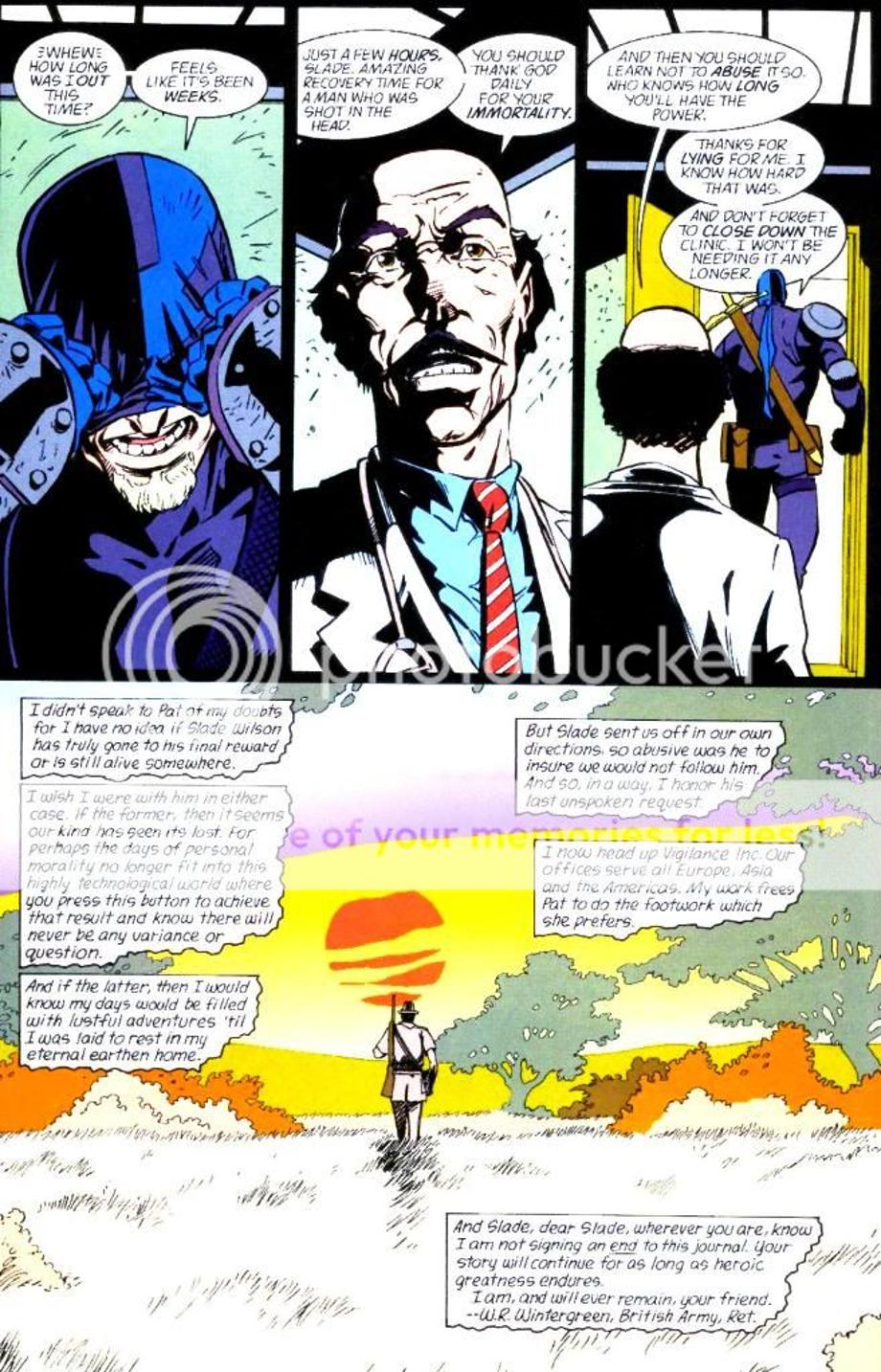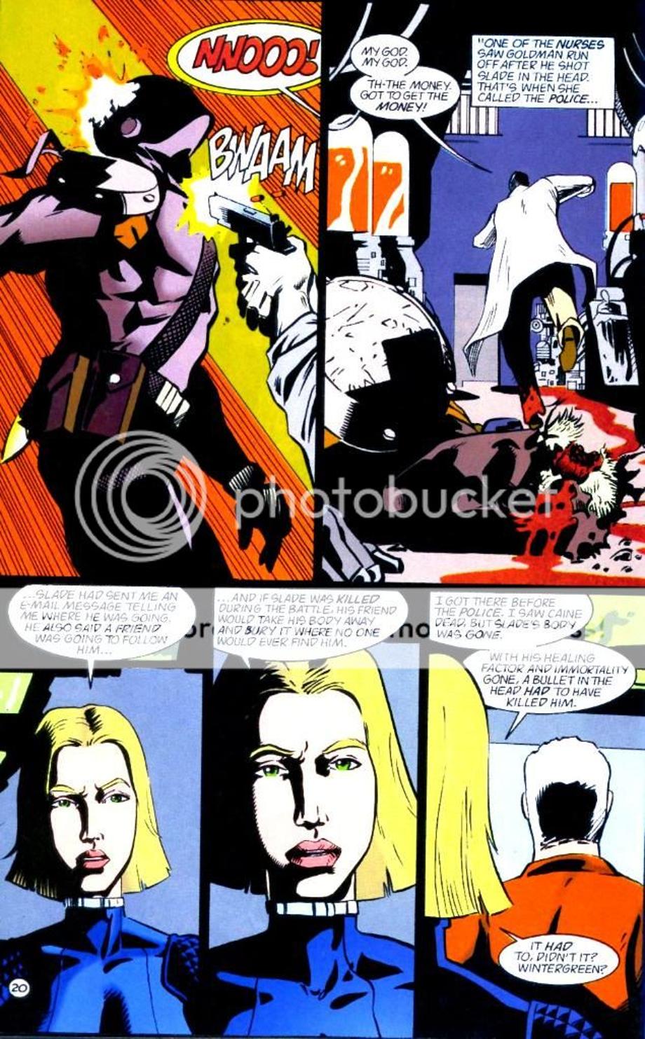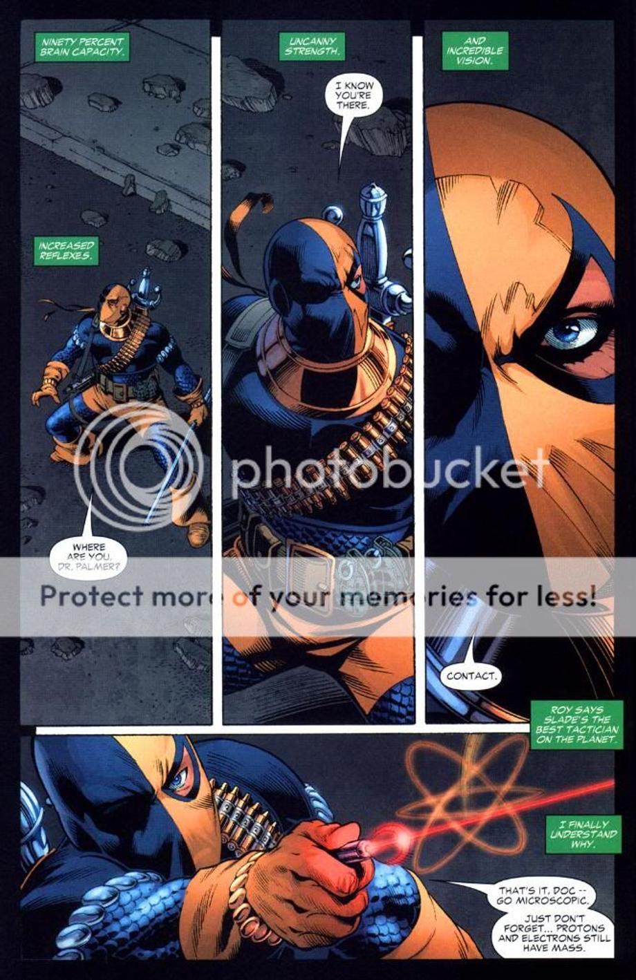 20. Healing factor quickly negates an attack from inside his brain meant to kill him(from Chershire). His healing factor adapted after one attack, and in the words of slade himself "Your little death zap is now an annoying ache".