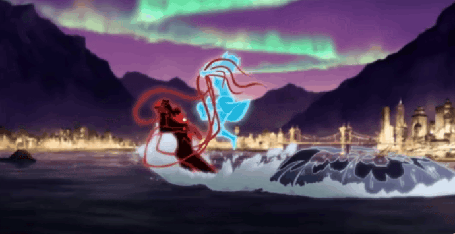 Korra’s father and uncle had been at each other’s throats all season. There was a lot of spirit action, and a lot of battles involving vehicles and mechs, but one on one bending fights were somewhat rare in Book Two. Thankfully, these two accomplished water-benders gave us a pretty magnificent showdown that eclipses my favorite fight from Book One (Korra vs Tarlock in his office), and rivals the Agni Kai between Zuko and Azula in the original series. Visually, this face off should go down as one of the best fights in Avatar history.