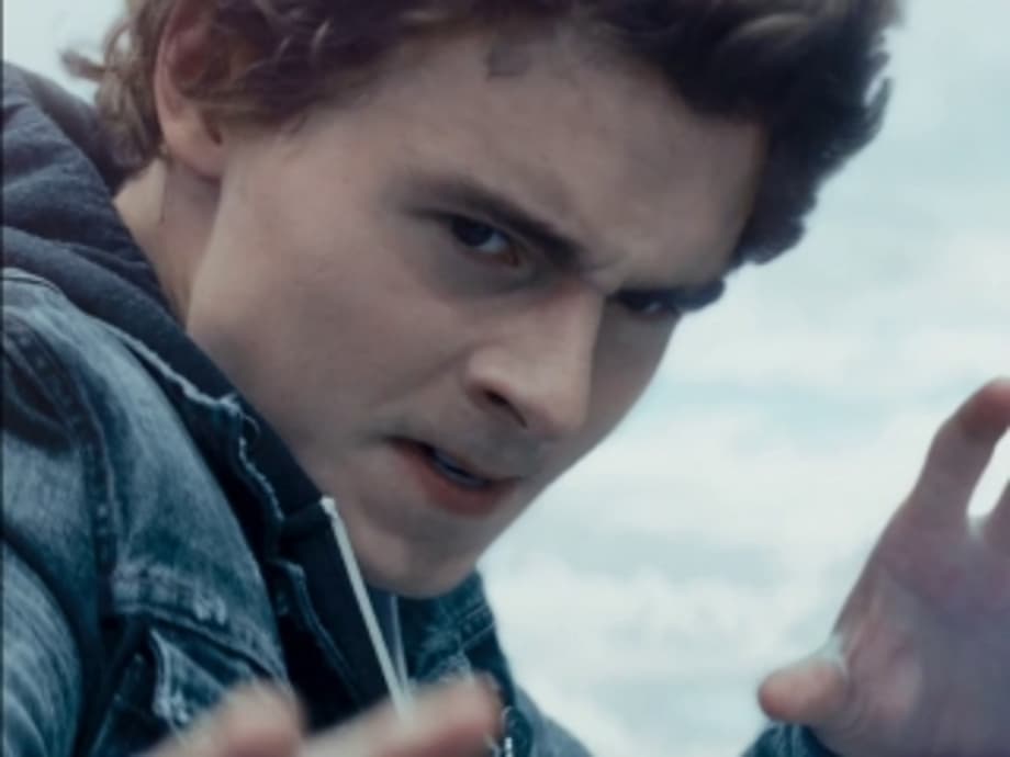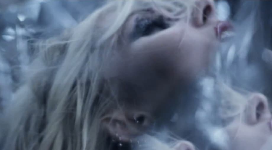 The invisible girl takes a few steps forward then drops to her knees in a despairing splash, screaming out for somebody to come find her, this phantasmal temper tantrum manifests in the physical world as an invisible dome displacing the water around her, pressing the canyon basin's shallow waters into miniature tidal waves EXPANDING in a circle around her, and sends out a SHOCKWAVE that topples over a sandstone collumn. Now she's standing on dry desert ground, yet with the slightest hand gesture the water retracts and floods back around her transparent feet. Trudging out of the reservoir to find an exit from the canyon, Sue doesn't feel herself regaining visibility but we start to see her distraught face reappear, her running makeup, her gushing nose, and a sodden outfit combined with a cold desert-wind has her shivering violently on the verge of hypothermia. Clutching crossed arms, she looks upward to navigate using the stars but they've all but disappeared as morning sunlight scatters through the upper atmosphere. Just then, Sue picks up on the sound of the FF's helicopter blades whirring before it flies over the canyon, and to transition into the next scene, the camera fixates on one point in the sky then tracks downward to view a completely new location.