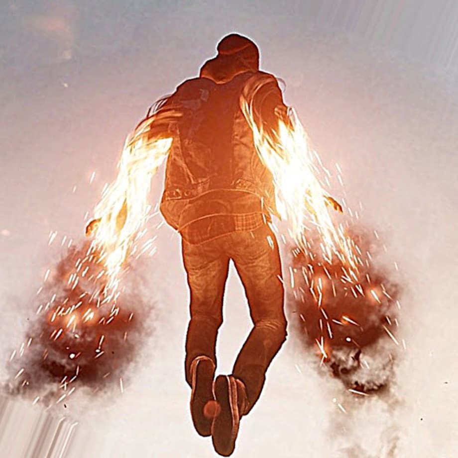 Johnny Storm's head enters the frame from below, the look on his face tells us that standing in the middle of a fiery crater is the last place he expected to wake up on a Saturday morning, he climbs out from the impact cavity in melted soles and rippled sportswear while every patch of arid grass within a 5-ft radius of him crackles into ignition. His nostrils are burning from the smoke (or is the smoke burning from his nostrils?) he swipes at his nose and then brushes off his shirt— no literally, brushes it off into a tattered heap. Worse yet, pieces of the artificial fabric get stuck to his hands and combust into two makeshift cave torches, and the person at the giving-end of what should be an excruciatingly painful 3rd-degree burning sensation can only stare silently at his blazing forearms and walk for about fifty paces in the wrong direction while a smoldering trail of dead plants crackles behind him. He thinks to himself he's nowhere near the flatlander base anymore, this probably isn't even Nevada, I must've been teleported to an adjacent state like New Mexico or Wyoming (yeah... geography was never his strongest suit.) It isn't until reaching higher ground that he finally catches a glimpse of the wildfires unfolding out for miles — where he'd originally impacted the Earth there now strides a mountainous SMOKE PLUME resembling a dense volcanic ash cloud, drifting ominously over a dryland forest. The Future Foundation helicopter wushes through the wall of smoke minutes before any wildfire suppression squad can arrive, Johnny decides to guarantee his immediate rescue by jumping shouting and waving his hands through the air, but this motion causes his arms to combust which ignites a nearby Joshua tree. Still unaware that he's the source of the fire, his attempts at extinguishing these RAMPAGING WILDFIRES only fan the flames of the uncontrollable inferno that sprang up in his wake. High altitude aerial shots of the large-scale natural disaster segue us right into the next scene where we're following the colossal smoke-storm as it stampedes towards a nearby town...