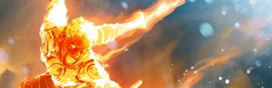 "First order of business: sleeping arrangements for spontaneous combusto-boy here." Johnny responds from inside his dimly-lit quarantine chamber, "The hell you just call me?" "Son, you're wearing an exorbitantly-priced flame-retardant synthetic fabric developed by Manhattan FD." "Flame retardant, yeah, that's real original. Sick burn." "We're gonna need you to... set yourself on fire, on command, until we can find a material suited to your heat signature." "Whenever you're ready, Guy Montag. Light it up." He burns through the expensive firefighter clothes in seconds, along with an incombustible micro-weave garment, and a 14-layer liquid cooling-ventilated spacesuit, before they arrive upon... "Unstable Molecule Jumpsuit. Blue." "My favorite color. Try not to turn this one black." This time the synthetic fabric doesn't disintegrate, in fact when he flames off there's not a single scorch mark on it. "This stuff really breathes!" Alyssa responds, "It's an experimental fabric that's highly responsive to energized matter. We never found a good use for it." "Can I maybe get this in jacket-form? Vintage style, maybe throw in some racing stripes?" Sue walks in on him at the Building's weightroom, his face turned pallid after the accident and hasn't turned back since. Alyssa observes each of their cells through a microscopic lense, with each of their biological building blocks acting out their powers: Reed's cells constantly shift and acquiesce, Susan's cell fluctuate in and out of the visible spectrum, Ben's jagged cell composition looks orange and behaves geologically, and Johnny's highly reactive cells set the microscope on fire.
