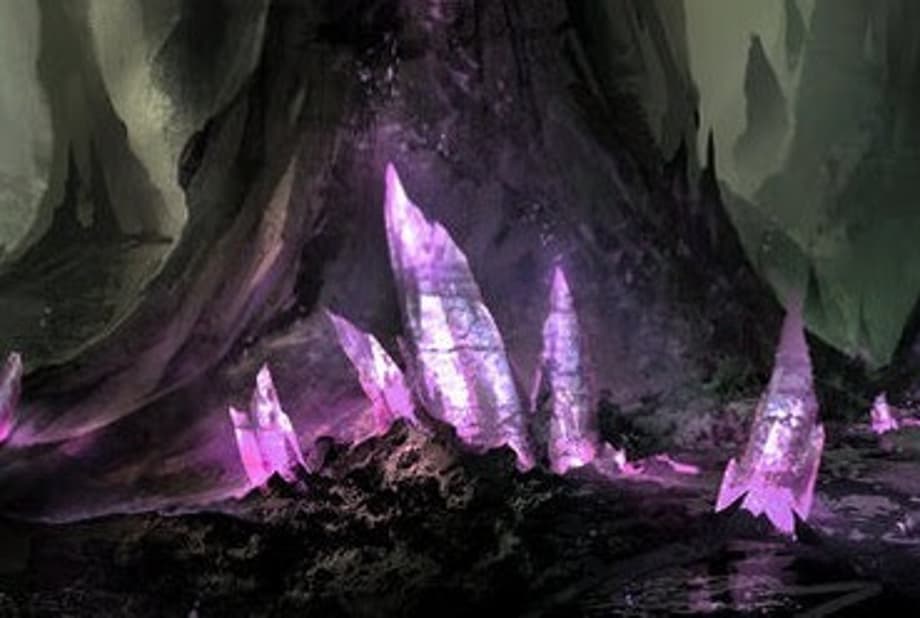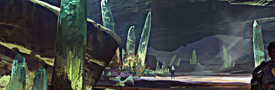 Jumpcut to Harvey and Sue breakIng all the way through the stalactite barrier to find the entrance to a hidden crystal repository buried seventy feet below the surface of Manhattan that, through an alchemical combination of selenite beams and a limestone foundation, is allowing someone or something to keep a portal open down here. Neither can believe their eyes, what we've found here is... it's impossible, something this grand and beautiful would've already been discovered by now. "Not unless this formation hasn't existed for very long," her dad responds, the international team of scientists behind him is having an even harder time believing what they're seeing, an unmapped CRYSTAL CHASM under NYC is streaming live via their headsets. In the distance, Elder spots two enormous crystal beams jutting out from the ground and intersecting at the top, covered in the same alien symbols etched into the pillars beneath that dreaded island, alien symbols that could only have been engraved in stone by the self-proclaimed Ruler of the Negative Zone. "Elder, have you found something." His ungloved hand brushes against the emblems as he tries to read them like braille dots, the residual effects of the COSMIC CONTROL ROD are slowly coming back to haunt him. "Tell me something, Harvey. You're freaking me out here." The professor offers nothing resembling an answer as he attempts to enter that state of mind again, trying to recall the visions and decipher the alien language. Suddenly the pillars become hot to the touch, Elder pulls back his visor, his white cataracts reflect the afterglow emanating from the crystal beams, and as the glowing interface intensifies in brightness, the space between the pillars starts to blur. "Hands off! You're doing something to it!" Sue holds her MB-ESG1 up at arms length, shouting authoritatively, "I'm not doing anything to it," the crystalline phosphorescence lights up the entire room as a sudden power surge opens the triangular portal, siphoning energy from the electrical grid at 15-minute intervals. Like clockwork, another A-WAVE piles through the dimensional gate, the swarm fills up two panaramic screens, startling Frank and the other scientists half to death, "Get outta there! It's done, we can end the mission later after we regroup! Abort the mission, now! Do you copy?" No one copies.